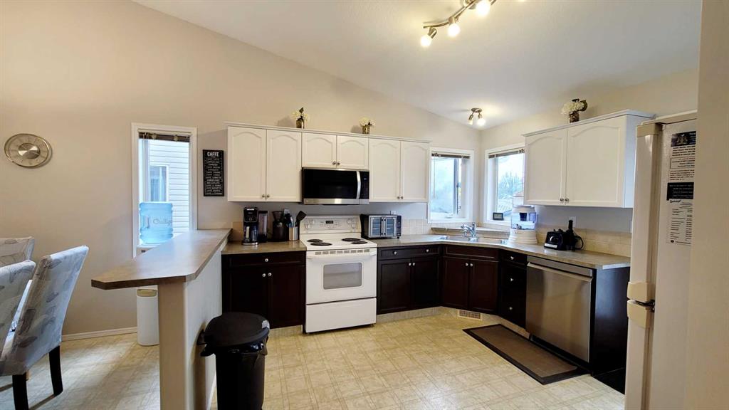 Welcome to 15 Elreg Street — a beautifully maintained and fully developed modified bi-level that blends space, functionality in every corner. From the moment you step inside, you’ll be greeted by vaulted ceilings and an abundance of natural light pouring through the oversized front window in the sunken living room, creating an inviting and airy atmosphere. Just a few steps up, the open-concept kitchen and dining area provide an ideal space for both everyday living and entertaining. The U-shaped kitchen features crisp white cabinetry, a corner sink, raised eating bar, tiled backsplash accents, and plenty of counter space for meal prep and gatherings. The new dishwasher and microwave (2024) add even more convenience to this well-equipped space. The upper level also includes two generously sized bedrooms and a full 4-piece bathroom, ideal for families or guests. Downstairs, the fully finished basement expands your living space with a large family room, two additional bedrooms, and a beautifully renovated 3-piece bathroom (2023) — perfect for teens, guests, or a home office setup. The new basement flooring (2022) adds a fresh, modern touch, while the huge under-stair storage area offers clever space-saving solutions. You’ll also find a spacious laundry area with a new dryer (2024) and plenty of room to stay organized. This home has been updated with some mechanical improvements including a new hot water tank (2024), new shingles (spring 2023), and a battery backup sump pump for added peace of mind. It’s also a no-smoking home, ensuring a clean and well-cared-for environment. Step outside to enjoy the fully fenced and landscaped backyard, complete with a newly stained deck, covered front veranda, and mature trees offering beauty and shade. A large rear parking pad provides ample space for vehicles or future garage plans. A welcoming, family-friendly neighborhood with easy access to schools, parks, out door skating rink, and local amenities. This move-in ready home offers unbeatable value — just unpack and start enjoying your new space!
