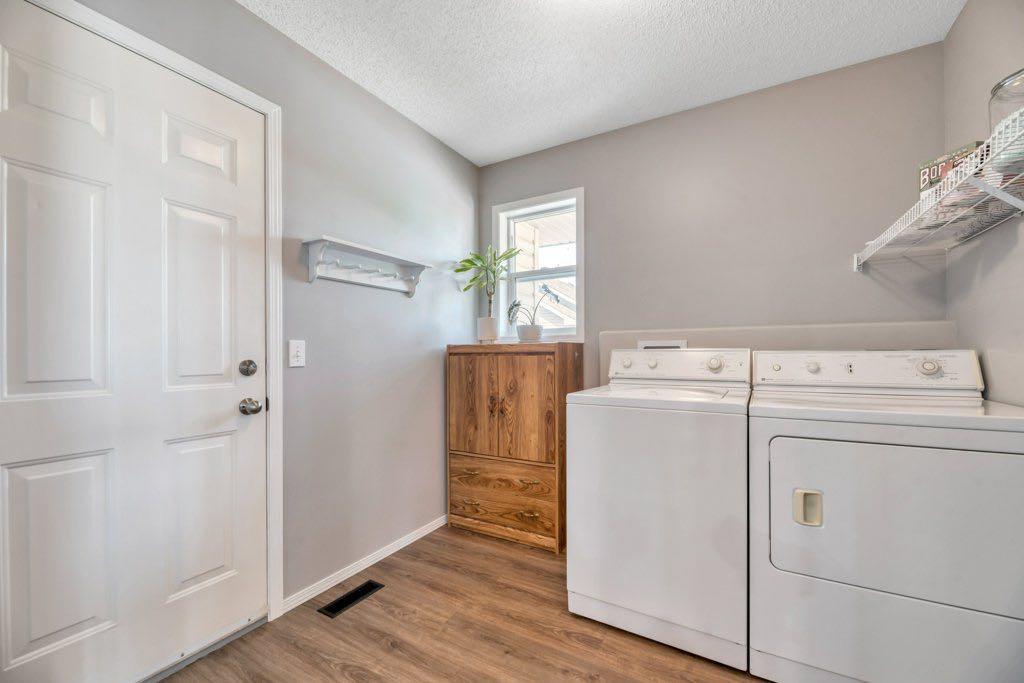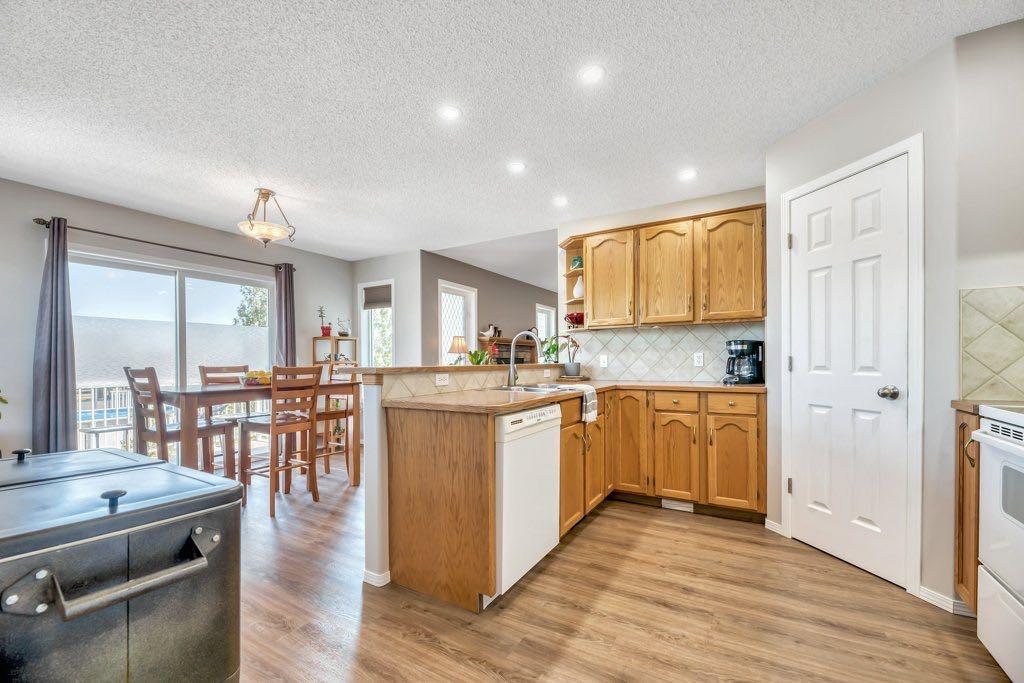 Homes this special don’t hit the market very often. This fully finished walk out bungalow nestled on the most idyllic lot on Langdon’s popular NE side could be yours just in time for summer. At just over a 1/4 acre this property is abundant with mature trees, bushes, plants and decorative garden areas. Situated on a quiet cul-de-sac the home is set back to provide an expansive front lawn as well as an oversized driveway with plenty of room for multiple cars and your RV or boat. A charming covered front porch is the perfect place to sip a morning coffee and wait for the hummingbirds to flit by. As you step into the spacious front foyer you’ll be wowed by how bright, light and open space the main living area ... thanks to the vaulted ceilings with skylights. A cozy wood fireplace is flanked by 2 windows with decorative glass creating a unique and charming feel. A nice sized dining area is just off of the living room with sliding doors to easily access your terrific back deck that stretches the entire width of the home. A raised breakfast bar is between the kitchen and dining areas. This layout is ideal for those who like some separation between their living space and kitchen without it being completely closed off. The laundry room / mudroom is next to the kitchen and leads to the garage. You’ll find 2 really large bedrooms on this main level including the primary with 4 pc ensuite, walk in closet and direct access to the back deck. A second 4 pc bath is ideally located next to the other bedroom. Newer luxury vinyl plank flooring throughout the entire main floor is durable and provides a fresh, clean, cohesive feel. The fully finished lower level offers 9 foot tall ceilings, 2 more really large bedrooms each with its own walk in closet and a 4 piece bath. . They share the full bath. The large recreation area is perfect for hanging out watching movies as a family or entertaining friends. Best of all you can step directly into your beautiful backyard where you’ll find a covered paving stone patio, raised garden beds and tons of trees and plants. All of the hard work creating this lush outdoor oasis has been done now you can spend your summers just enjoying it. Last but not least you can enjoy the oversized attached 2 car garage that is insulated, drywalled and heated with 11 foot ceilings and 8 foot doors. . Plus it comes with ample storage shelves, 2 work benches, a sink with hot and cold water and a man door to the side yard. If you’re ready to get away from the city why not come and see what the charming hamlet of Langdon has to offer? Great schools, unique and amazing local businesses, plus a friendly small town feel all within a short commute to Calgary. Your’e going to love it here! With a great walk out this home would be suitable for a multi generational family.