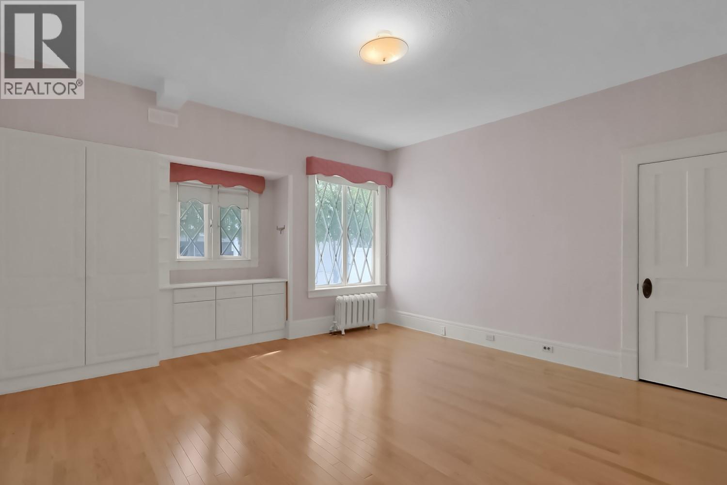Step back in time with this beautifully preserved piece of Penticton’s history. Welcome to the Captain Stevens Edwardian Cottage, a distinguished character home built in 1906 and lovingly maintained for more than a century. This timeless residence blends historic charm with modern comfort on a 12,000+ sq. ft. landscaped lot, surrounded by mature trees and new privacy fencing. The main floor, measuring over 2,000 sq. ft., welcomes you through an elegant foyer leading to formal living and dining rooms showcasing the craftsmanship of the Edwardian era. The well-equipped kitchen offers modern convenience while maintaining the home’s authentic warmth. Also on this level, a versatile suite-style area provides the perfect setup for parents or guests—featuring a cozy sitting room with gas fireplace, generous bedroom, and a fully renovated 2025 bathroom complete with walk-in shower. The upper floor offers three additional bedrooms, each with walk-in closets, along with a quaint bathroom highlighted by a classic clawfoot tub—a nostalgic touch that complements the home’s period character. Outside, the property shines with lush perennial gardens, ample parking, a detached garage for convenience and storage. For effortless access, an exterior elevator lift has been installed—perfect for added mobility and ease of living. With its central location near downtown amenities and the lakefront, this rare historic gem offers the perfect blend of heritage, comfort, and lifestyle.