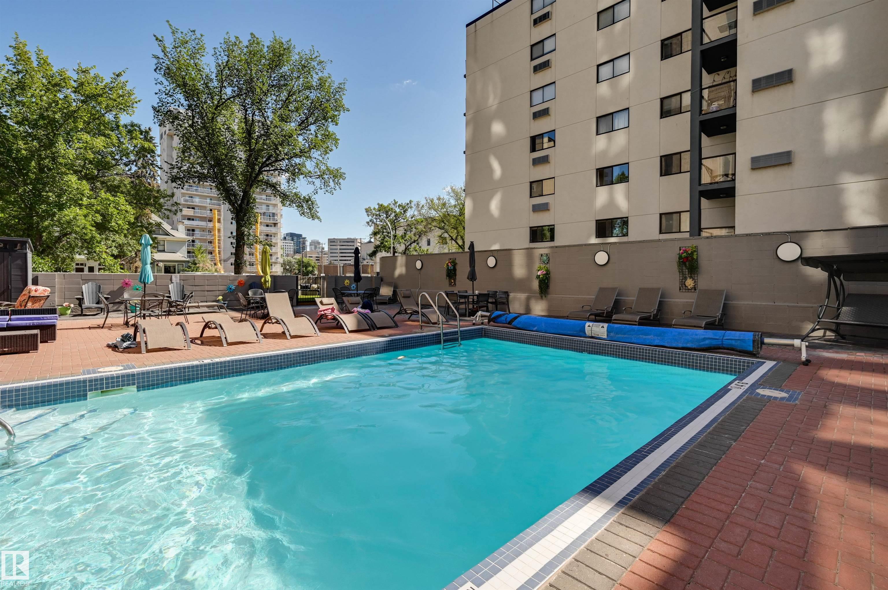 Welcome to the renowned Hyde Park- a solid concrete building. This award winning building was the first high rise constructed in Western Canada. Featuring resort style amenities, including an outdoor pool, indoor pool, hot tub, dry & wet sauna, fitness centre, guest suite, outside BBQ & picnic area, indoor games room, tennis & pickle ball courts. Located in the vibrant downtown core, you are surrounded by Edmonton’s most popular restaurants, shopping, & entertainment. Step outside your front door and walk to Jasper Avenue, the Ice District, Rogers Place, Grant MacEwan University, the LRT pedway & all your daily essentials. This impressive 15th-floor corner unit offers 1295 sqft of upgraded living space. The open concept layout features 2 beds, 2 baths, stunning city skyline views & a year round SE facing balcony. Complete with in-suite laundry, heated underground parking (#36), a storage locker (#86) and condo fees that include all utilities, this exceptional unit delivers comfort, convenience & style.