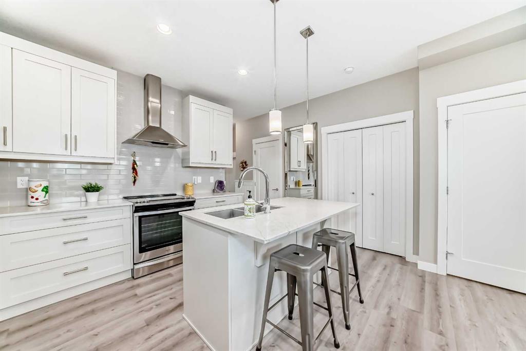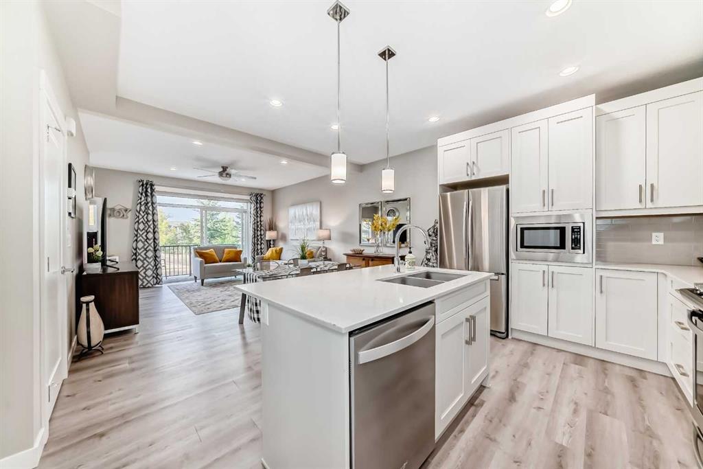 Welcome to this meticulously maintained, 3-bedroom townhouse that has everything you’ve been looking for (and maybe a few things you didn’t even know you needed). The main floor is open, airy, and filled with natural light thanks to high ceilings and big windows overlooking the park. The heart of the home is the crisp white kitchen with full-height, cabinetry, a quartz-topped counters and an island with seating (perfect for homework, happy hour, or both), and premium finishes throughout. There is plenty of space for a dining table and even your biggest living room furniture. Lots of storage and a half bath along with a balcony overlooking the park rounds out the main floor. Upstairs, you’ll find a spacious primary suite with walk-in closet and full ensuite, plus two more bedrooms and another full bath plus laundry. One of the bedrooms has been transformed into the ultimate dream closet — think boutique vibes with room for all your shoes — but it can easily return to bedroom status if that’s what you need. The fully developed walkout basement is a show-stopper: a huge family/rec room with full bathroom and a walkout to the lower patio. Ideal for movie nights, a teenager’s hangout, or even a roommate who likes their own space with a separate entrance. Storage will never be a problem either, with cupboards everywhere and a large dedicated storage room downstairs. You will love the convenience of the attached garage with an additional parking spot in the driveway. Outside your door, you’ll enjoy direct access to the park, pathways, and a playground — a family-oriented community that feels like an extension of your own backyard. Condo fees are low, the complex is well maintained, and the lifestyle is unbeatable. Fresh, stylish, practical, and just a little fun — this townhouse is ready to welcome you home.
