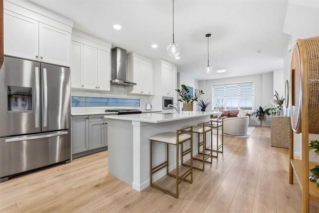 **OPEN HOUSE: Sunday, March 1st from 2-4pm** Welcome to life at a higher level in Alpine Park. Located in one of Calgary’s most elevated new communities with quick access to Stoney Trail, this rare THREE-STOREY HOME offers over 2700SF OF FINISHED LIVING SPACE, including a FULLY DEVELOPED BASEMENT and a PRIVATE ROOFTOP PATIO. The main floor features LUXURY VINYL PLANK flooring, STONE COUNTERTOPS, upgraded appliances including a GAS RANGE, and a seamless layout designed for both daily living and entertaining. Upstairs, the spacious primary retreat includes a FIVE-PIECE ENSUITE with DOUBLE VANITIES, a glass shower, and a separate SOAKER TUB. Two additional bedrooms, a full bathroom and thoughtfully placed laundry room complete the second level. The bright and airy THIRD-STOREY BONUS ROOM opens onto a PRIVATE ROOFTOP PATIO - a versatile space perfect for summer evenings, morning coffee, or entertaining above it all. The FULLY DEVELOPED BASEMENT adds a fourth bedroom, full bathroom, and flexible living space ideal for guests, a home office, or a media area. Outside, enjoy a fully landscaped and FENCED YARD with dual gates for convenience, concrete patio, and DOUBLE DETACHED GARAGE - a clean, low maintenance set-up that's ready to enjoy from day one. Additional upgrades like GEMSTONE ARCHITECTURAL LIGHTING, CENTRAL AIR CONDITIONING, and a RADON MITIGATION SYSTEM offer both comfort and peace of mind. This is not just another new-build, it’s a thoughtfully upgraded, move-in ready home with rare vertical living in one of Calgary’s most exciting new communities.