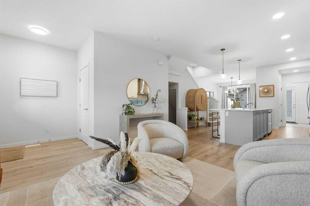 **OPEN HOUSE: Saturday and Sunday, March 7 & 8th from 12-2pm** Welcome to life at a higher level in Alpine Park. Located in one of Calgary’s most elevated new communities with quick access to Stoney Trail, this rare THREE-STOREY HOME offers over 2700SF OF FINISHED LIVING SPACE, including a FULLY DEVELOPED BASEMENT and a PRIVATE ROOFTOP PATIO. The main floor features LUXURY VINYL PLANK flooring, STONE COUNTERTOPS, upgraded appliances including a GAS RANGE, and a seamless layout designed for both daily living and entertaining. Upstairs, the spacious primary retreat includes a FIVE-PIECE ENSUITE with DOUBLE VANITIES, a glass shower, and a separate SOAKER TUB. Two additional bedrooms, a full bathroom and thoughtfully placed laundry room complete the second level. The bright and airy THIRD-STOREY BONUS ROOM opens onto a PRIVATE ROOFTOP PATIO - a versatile space perfect for summer evenings, morning coffee, or entertaining above it all. The FULLY DEVELOPED BASEMENT adds a fourth bedroom, full bathroom, and flexible living space ideal for guests, a home office, or a media area. Outside, enjoy a fully landscaped and FENCED YARD with dual gates for convenience, concrete patio, and DOUBLE DETACHED GARAGE - a clean, low maintenance set-up that's ready to enjoy from day one. Additional upgrades like GEMSTONE ARCHITECTURAL LIGHTING, CENTRAL AIR CONDITIONING, and a RADON MITIGATION SYSTEM offer both comfort and peace of mind. This is not just another new-build, it’s a thoughtfully upgraded, move-in ready home with rare vertical living in one of Calgary’s most exciting new communities.