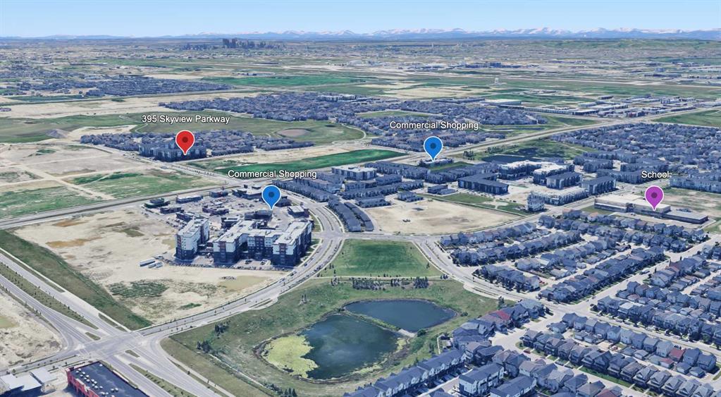 Discover modern condo living in vibrant Skyview Ranch, where lifestyle meets convenience. This bright unit features a private balcony with sweeping views of the ROCKY MOUNTAINS and DOWNTOWN CALGARY, plus the added benefit of one titled parking stall and an assigned storage space just outside your door. Residents enjoy access to premium building amenities including a fully equipped gym, a welcoming lounge for gatherings, and even a pet spa in the parkade — making everyday living both comfortable and elevated. Daily essentials are close at hand with FreshCo, Mega Sanjha Punjab, and Pak Foods minutes away. Café Rewind and Chai Sutta Bar offer cozy spots to unwind, while local favorites like Jaffa Shawarma and The ChaatBar serve up highly rated dining just steps from home. Outdoor recreation is nearby at Cityscape Wetland and Cornerstone Park, while families benefit from proximity to Prairie Sky School and Nelson Mandela High. Essential services such as Peter Lougheed Centre, Calgary Police Saddletowne, and Cornerstone Fire Station No. 38 provide peace of mind. With Saddletowne Station only 13 minutes away, commuting across the city is effortless. This condo offers the ideal blend of lifestyle, amenities, and views — a must-see opportunity in Calgary’s northeast.