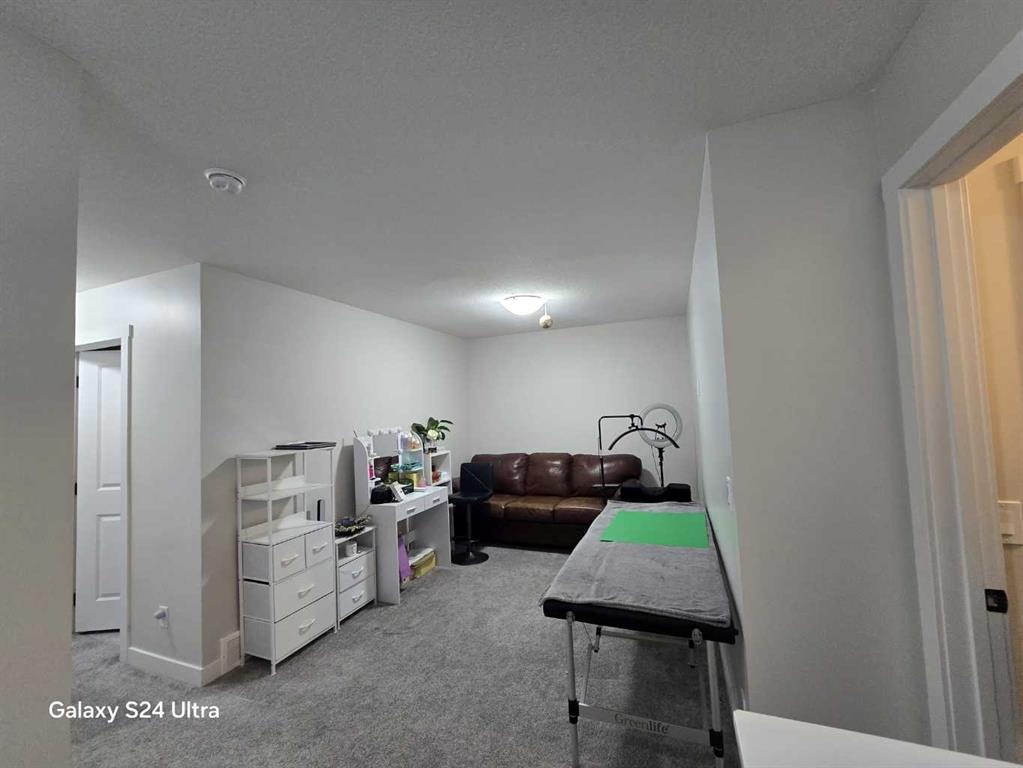 Welcome to this well-maintained, newer home located in the desirable community of Bayview, Airdrie. This beautiful 3-bedroom, 2.5-bathroom duplex features a front-attached garage, a bright open-concept layout, and a huge backyard—perfect for summer activities and family enjoyment. The main floor offers a spacious living room filled with natural light, an open kitchen with quartz countertops, modern cabinetry, stainless steel appliances, and a convenient 2-piece bathroom. Upstairs, the primary bedroom includes a private ensuite with a standing shower, while two additional good-sized bedrooms share a full bathroom. A central bonus area provides flexible space for a home office, kids’ play area, or reading nook. The unfinished basement offers excellent potential for future development, allowing you to design and build your ideal space. Conveniently located close to parks, walking and biking paths, playgrounds, schools, and shopping, this home combines comfort, functionality, and a great community lifestyle.