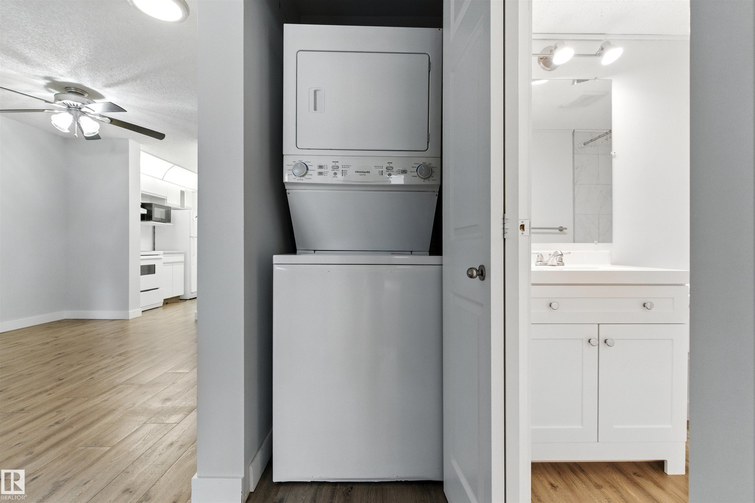 QUIET + QUAINT living in QUEEN MARY PARK! This SOUTHWEST FACING unit allows natural light through the GENEROUS Living Room, through the Dining Area, into the adjoining kitchen with AMPLE + BRIGHT CABINETRY. The PRIMARY BEDROOM has a generous footprint + DOUBLE CLOSET as well as a LARGE WINDOW. The 2nd Bedroom can be utilized as an over-sized OFFICE or CREATIVE SPACE. The CHIC + STYLISH 4PC BATH with MARBLE patterned tub surround, continues the BRIGHT + FRESH tones that brighten the space immensely. Enjoy the ALL-SEASON, SEMI-PRIVATE PATIO, IN-SUITE LAUNDRY, dedicated STORAGE ROOM, and ASSIGNED PARKING. This is a perfect fit for anyone looking to be in one of Edmonton’s most walkable neighborhoods, near the Loblaws City Market + the Brewery District.