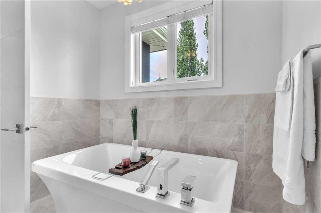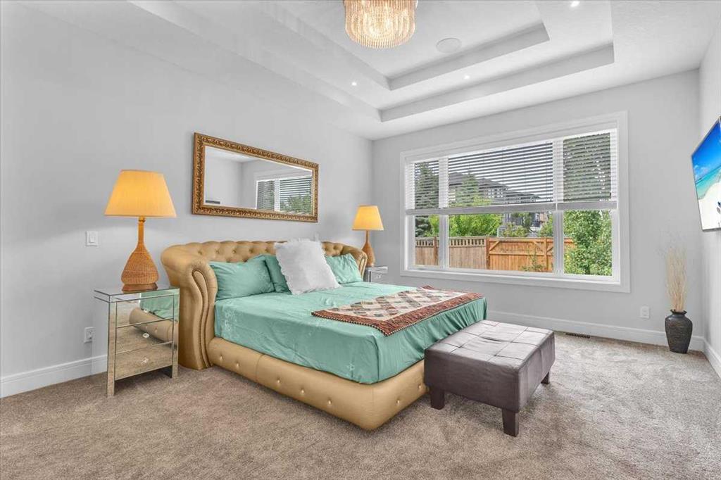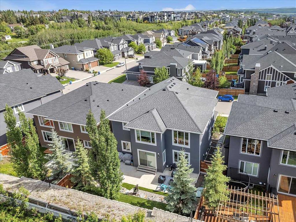 Open House Saturday 11:30-2:30. EXTRAORDINARY ASPEN WOODS ESTATE HOME. Attention discerning buyers — make time to view this 4,700 sq ft custom-built show-home-condition residence, with stucco-finishing, in prestigious Aspen Woods. Nestled on a quiet street backing onto green space, this perfectly laid-out estate home offers estate living of comfort, style, and flexibility with functional sophistication and desired upgrades. The main floor features a distinct office near the front, a spacious 19-foot high ceiling living room to one side, a bright dining area in the middle, and a seamlessly integrated chef’s dream kitchen on the other side. This professional-grade kitchen boasts full-height cabinetry topped with French glass doors, a Wolf-brand gas cooktop framed in quartz countertops, a chimney hood fan, and a 60-inch refrigerator, plus a built-in wall oven and microwave. The ample-sized walk-thru pantry with more built-in cabinetry directs you to the mudroom towards the garage, and a windowed flex room (currently being used as a home theatre). Stairs in the centre of the home lead to a NINE-FOOT high 2nd floor with 4 large bedrooms, 3 FULL bathrooms, and a tray-ceiling bonus room with large South-facing windows. The elegant primary retreat, also with tray ceiling, has a large window facing the private green space, and a 12X16 ft ensuite with in-floor-heating, double-sink vanity with drawers, a fully glass-enclosed shower, and an elegant stand-alone tub plus a private WC. Ensuite conveniently leads to the laundry room with a deep sink. Two other bedrooms share a Jack & Jill bathroom, while the fourth has its own full bathroom. The fully-finished in-slab heated basement with an efficient 11 ft-high insulated concrete foundation (ICF) has several large windows AND an above-ground door on the side. The hallway from this lower entrance and triple garage opens to a huge 28X16 ft recreation room with generous wet bar facilities, the 4th full bathroom, 5th bedroom, and a fitness room with large window & double doors. Enjoy a 50-foot-wide backyard oasis with low-maintenance artificial turf, mature trees, and a stone retaining wall with a field above for optimal privacy. Additional Highlights: 1) Heated triple garage with epoxy-finished floors 2) Freshly painted, no-smoking, no-pet home 3) full 8-foot interior doors, 220V outlets on every level 4) Close to shopping, and major thoroughfares, plus premier in-community private schools like Webber Academy, Rundle College, & Calgary Academy. Experience the virtual tour to appreciate the thoughtful layout and unparalleled comfort, and then have a look in person.