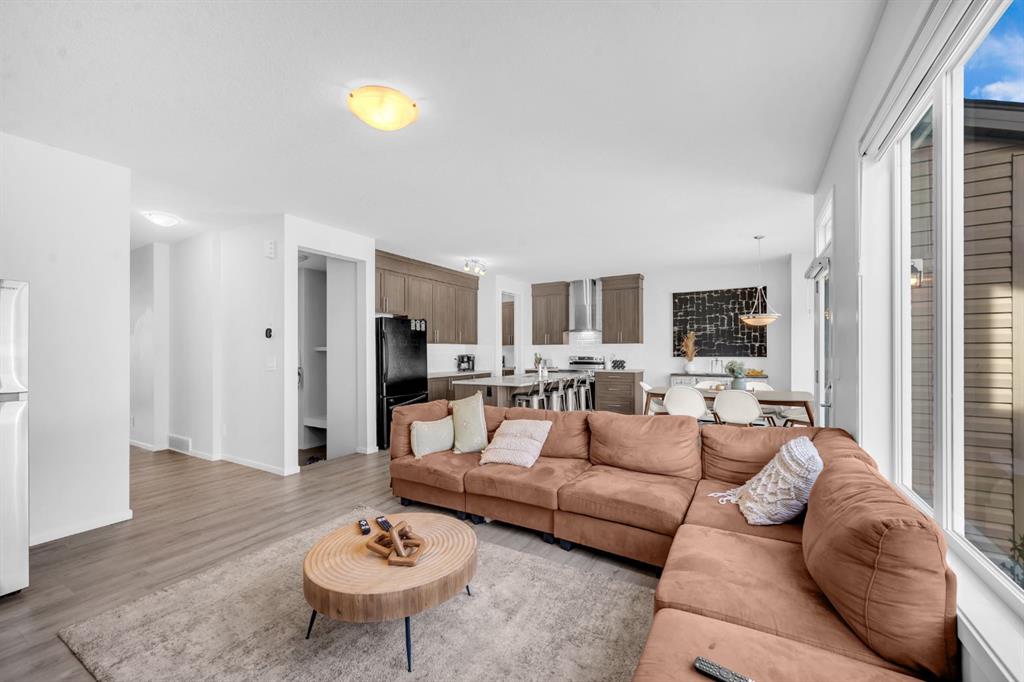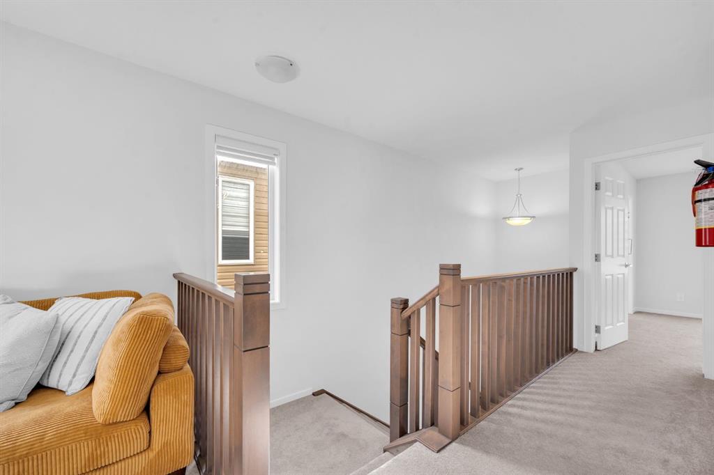 This beautifully designed 6 bedrooms, 4.5 bath home showcases craftsmanship, functionality, and style across every level — perfect for growing or multi-generational families. Step inside to a welcoming open layout with railing throughout the stairs, a spacious living area filled with natural light from large windows, and 9-foot ceilings creating an airy feel. The gourmet kitchen impresses with full-height cabinetry, granite countertops, stainless-steel appliances, a chimney hood fan, and a generous SPICE KITCHEN complete with pantry and extra cabinetry — ideal for large family cooking. A half bathroom, mudroom, and a well-planned dining area complete the main floor, designed for both comfort and entertaining. Upstairs offers four spacious bedrooms, including a luxurious primary suite with a tiled standing shower and walk-in closet. The upper level also features three full bathrooms, a bright and open BONUS ROOM, and a dedicated laundry area for everyday convenience. The basement is a standout feature — a fully developed LEGAL SUITE with a separate side entrance, two bedrooms, a full kitchen, and a living area — an incredible mortgage helper or ideal space for extended family. Located steps away from Carrington Plaza, offering No Frills, McDonald’s, and a variety of retail and dining options, plus quick access to Stoney Trail for effortless commuting. This is the perfect blend of elegance, space, and practicality — a great opportunity in one of NW Calgary’s most sought-after neighbourhoods.