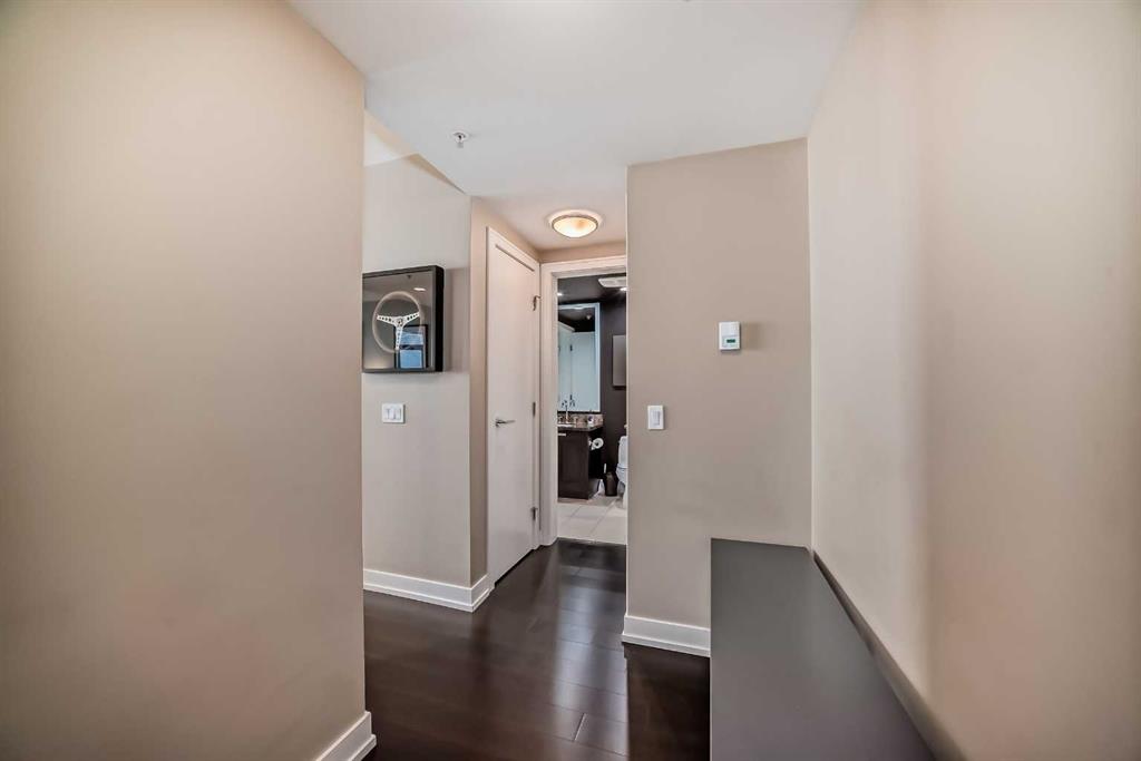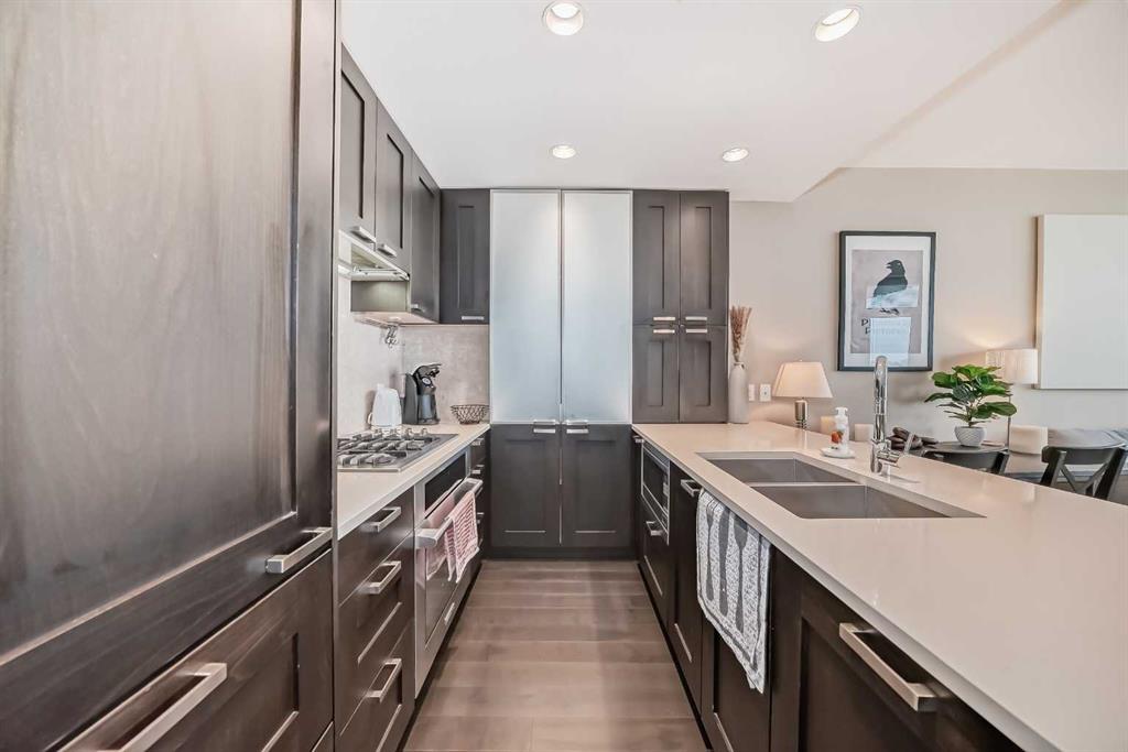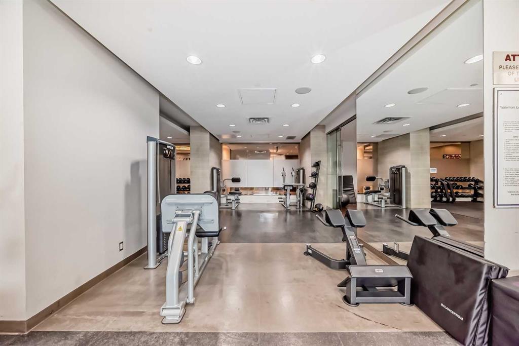 Welcome to this exquisite luxury condo located in the prestigious Waterfront. Perfectly positioned to capture the stunning west-facing views of the Bow River and partial glimpses of the majestic Rocky Mountains, this residence offers an unparalleled living experience in the heart of the city. As you step into this elegant condo, you are greeted by rich hardwood floors that flow seamlessly throughout the open-concept living space. The 9-foot ceilings and expansive windows fill the home with natural light, creating a bright and airy atmosphere. The thoughtfully designed layout maximizes both space and functionality, making it perfect for entertaining guests or enjoying quiet evenings at home. The gourmet kitchen is a chef's dream, featuring sleek cabinetry, high-end stainless steel appliances, and ample quartz counter space for meal preparation. The adjacent dining and living areas offer a warm and inviting space to relax and take in the picturesque views. The condo is equipped with modern conveniences, including air conditioning for year-round comfort. The spacious master suite offers a private retreat with large windows. Residents of 222 Riverfront Ave SW enjoy an array of luxurious amenities, including concierge 8am to 8 pm daily, a state-of-the-art fitness center, a relaxing hot tub, and a rejuvenating steam room. For those who love to entertain, the building offers a stylish meeting or gathering room, perfect for hosting events or socializing with neighbors. This condo represents the ultimate of urban living, with its unbeatable location, high-end finishes, and access to world-class amenities. Whether you're looking for a serene retreat in the city or a vibrant place to call home, this property is a rare find. Don’t miss your chance to experience the best of Calgary living at 222 Riverfront Ave SW.