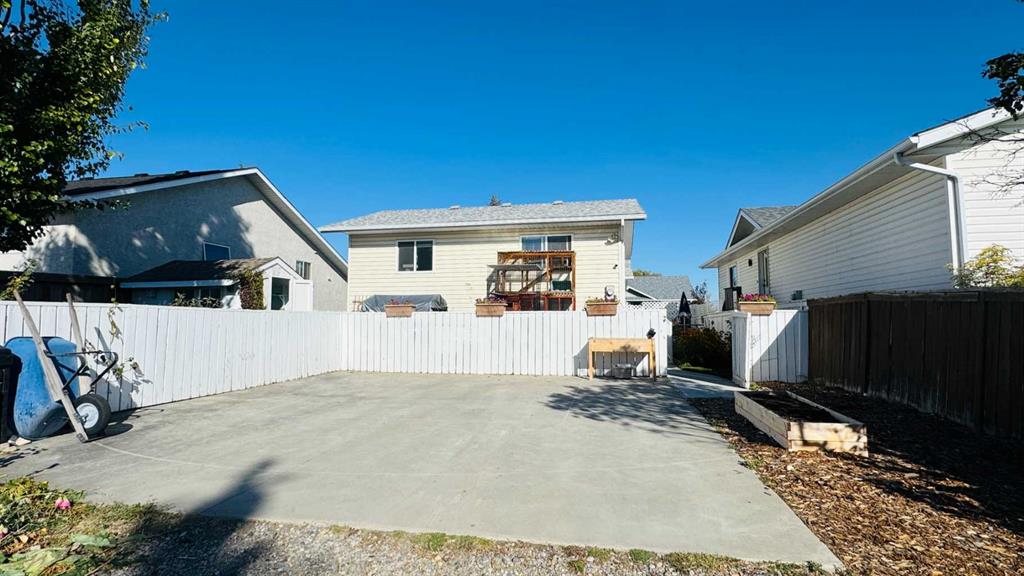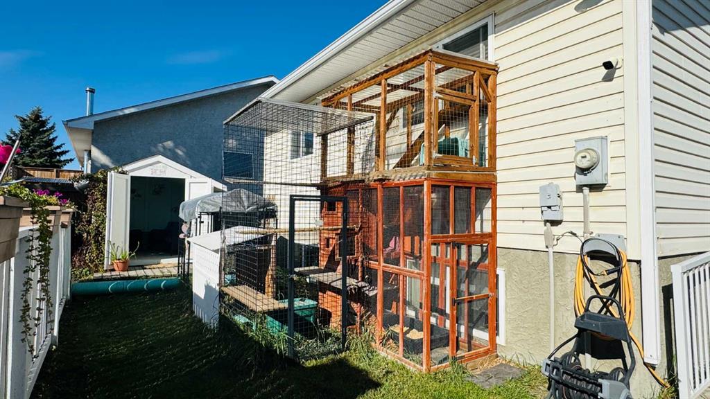Tucked away on a quiet street, you're just a short walk to schools, shopping, Sunshine Lake, and the scenic Happy Trails pathway system—ideal for families and outdoor enthusiasts alike. Inside, you'll find 4 bedrooms and 2 full bathrooms, including a private primary ensuite. The upper level offers three generous bedrooms, while the fourth bedroom is located on the lower level—perfect for guests, teens, or a home office setup. The main floor features a bright, spacious living room with a cozy gas fireplace, a cozy dining area, and an open-concept kitchen—perfect for everyday living and entertaining. A convenient side mudroom/laundry area with direct access to the backyard helps keep the home tidy and organized. The lower level includes a comfortable family room, the fourth bedroom, and a mechanical room, with access to a full crawl space offering abundant seasonal storage. For those that love the sun - this house offers windows for sun from all directions. Enjoy the morning sun in the kitchen, afternoon / evening sun from the upper bedrooms or lower family room and all-day sun that lights up the house from the skylight that is over the stairs to the upper floor. Step outside to a beautifully landscaped and fully fenced backyard, ideal for kids, pets, or relaxing in privacy. Enjoy your morning coffee on the charming front verandah or the sunny side deck. You'll also love the newly developed "she shed", currently used as an outdoor office/sitting room—just add a few twinkle lights, and it becomes the perfect spot to unwind at the end of the day. For additional covered storage - there are 2 sheds on West side of the house. Cat lovers, take note! This home features custom “catios” at the front and back, allowing your furry friends to enjoy the outdoors safely within the yard. Additional features include: Off-street parking on an oversized concrete pad, updated shingles - replaced in 2024 and Mature trees and thoughtful landscaping including 3 established raised garden beds. This home blends space, functionality, and a great location. Don’t miss your opportunity to make it yours!