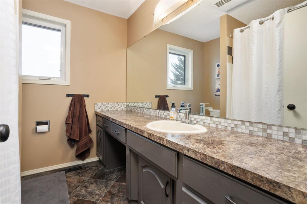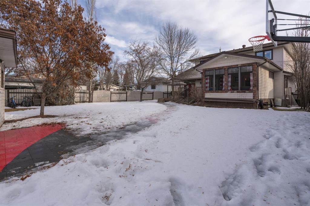 Welcome to this exceptional 2,106 sq ft two storey home with a double attached garage, perfectly positioned in an unbeatable family location. Backing directly onto a park and just steps from playgrounds and two elementary schools, this is a home where lifestyle and convenience truly shine. From the moment you step inside, the space is undeniable. Designed for entertaining on a grand scale, the living room and dining room comfortably accommodate seating for hosting holidays, celebrations, and gatherings of any size. The kitchen is a true chef’s dream, featuring beautiful soapstone countertops, a functional island, and an abundance of prep and storage space. Wrapped in windows and filled with natural light, the space is complemented by high end appliances, including an impressive gas stovetop that anchors the room. Whether cooking for family or a crowd, this kitchen delivers both style and function. Just off the kitchen, the family room offers a warm and inviting atmosphere, ideal for studying, relaxing, or basking in the glow of the wood burning fireplace, with deck doors leading to the beautiful tiered deck & yard. The main floor is complete with convenient laundry and a 2 piece bathroom. The stunning sunroom is sure to become your favorite space in the house. Surrounded by windows that all open to create incredible airflow, it is the perfect place to curl up with a book, relax, or entertain without worrying about bugs, rain, or wind. Upstairs, you will find four generous bedrooms, including a spacious primary retreat with a 3 piece ensuite, plus an additional 4 piece bathroom for the family. The fully finished basement adds even more versatility, featuring a bedroom, rec room, and a 3 piece bathroom, perfect for guests, teens, or extended family. Outside, the backyard is truly next level. a stunning deck will be your outdoor retreat while cheering the kids on the custom basketball court, designed to full high school three point distance with additional space beyond the line, featuring professional grade tiles, an NBA size adjustable hoop and fence that can be removed if desired. High quality weatherproof Bluetooth speakers are installed in custom enclosures and connect directly to the sunroom, creating an incredible indoor outdoor entertaining experience. This home is equally impressive when it comes to entertainment and technology. With premium surround sound systems on both levels, and a dedicated basement media setup with a short throw projector and a custom painted theatre style screen spanning 10 feet diagonally. The home is also wired for Ethernet in several rooms, providing fast and reliable connections for work, gaming, or streaming. This is a rare opportunity to own a home that offers incredible space, thoughtful design, premium features, and a location that is hard to beat. A true lifestyle property that must be experienced to be fully appreciated.