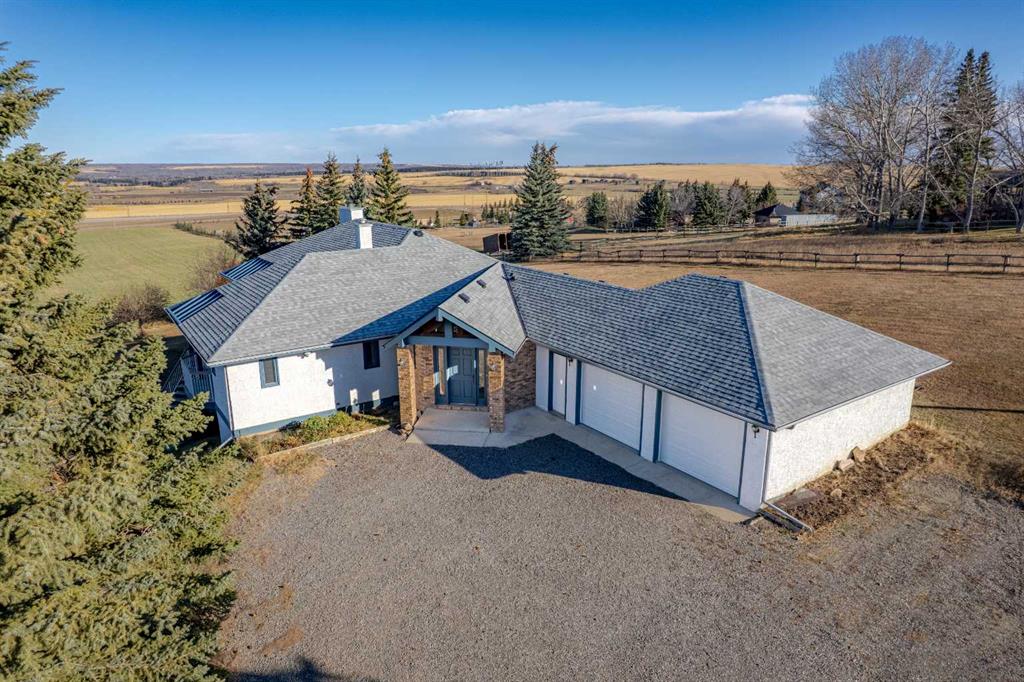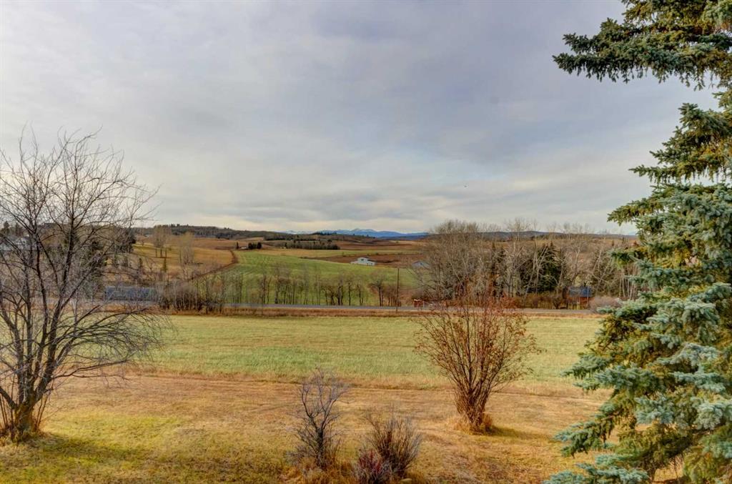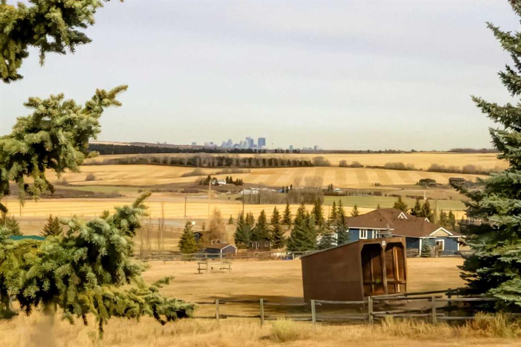 A rare opportunity to own 15.77 acres just past the city limits—only 12 minutes from Shawnessy and 7 minutes to the South Ring Road. This gently sloping property rises to a beautiful high point where the spacious walkout bungalow is situated, capturing lovely mountain and valley views from the home and a city view from the upper portion of the land. Surrounded by other attractive acreages and estate homes, including Red Willow Estates, this sought-after Priddis corridor location offers peace, privacy, and enduring value. The land provides ample space for horses, a future shop, or possible, potential subdivision (seller does not guarantee this) as it would be subject to MD application and approval. The home itself is solid and well-built, offering an excellent layout ready for renovation and personalization. The large kitchen enjoys mountain views, a cooktop island, four newer windows, above average amount of storage, and a built-in desk area. A few steps down, the living room features a stone-faced wood-burning fireplace and city views through its large windows. The primary bedroom includes a walk-in closet and 5-piece ensuite with a soaker tub, while the main-floor laundry offers a convenient sink and access to the double car attached, drywalled garage. The walkout lower level includes three additional bedrooms—two large rooms and a third bedroom with a closet and under-stair storage, making it ideal as an office or hobby space. A spacious workshop and utility area houses two newer hot water tanks (2017 & 2018) and enough space for multiple projects. New roof installed 2024. With an excellent well (10+ GPM), a solid structure, and a prime location, this property represents a truly rare offering—a large, private acreage close to the city with exceptional potential to create the home and lifestyle you desire.