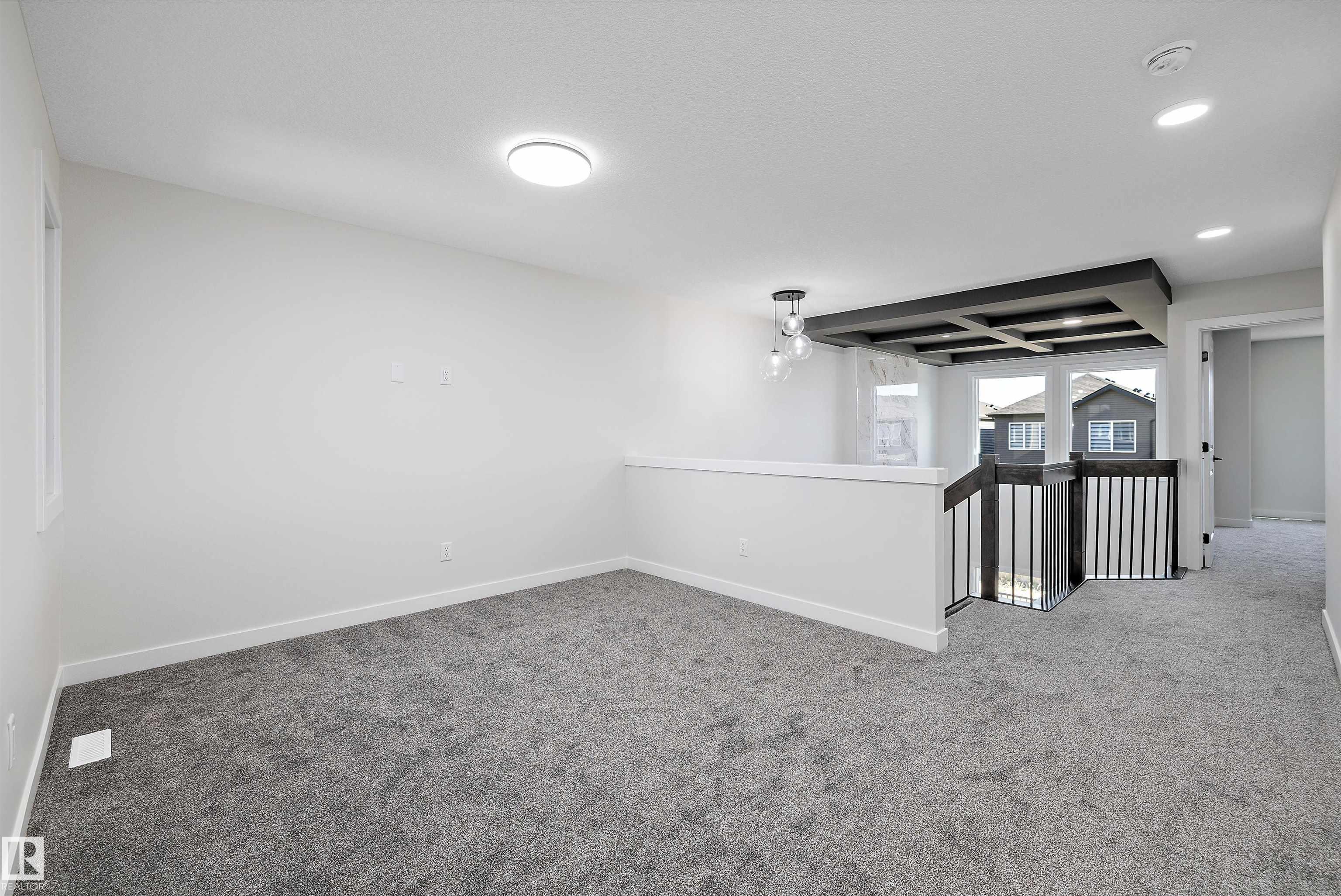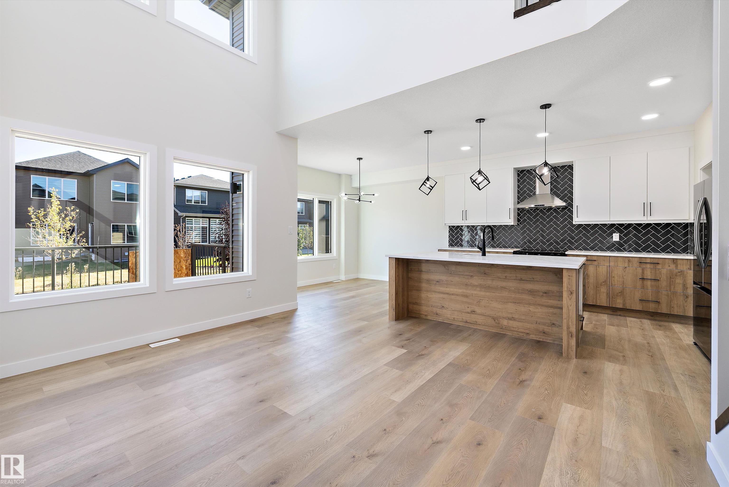 Welcome to this brand new 1871 SQFT Chelsea II model by award winning builder Blackstone Homes in the upscale neighbourhood of Kinglet Garden. This home has won the best home with BILD in 2025. Upon entering, you will be welcomed by spacious bright foyer. The must have mudroom offering built ins and bench with walk through pantry leading to beautiful up to the ceiling kitchen with huge island. Great room offers 18 feet open to below ceiling with coffered & linear fireplace finished with beautiful tiles. Second floor offers 3 big size bedrooms, 2 baths, bonus room & laundry room. Master bedroom is huge with feature wall & beautiful spa like en-suite offering double sinks, shower & freestanding tub, huge WIC. Other features - Separate entrance, Wainscotting in foyer, 9' main/basement ceiling, MDF shelving, rear deck with railing, upgraded flooring, black fixtures, upgraded quartz in kitchen/bathrooms, New Home Warranty. Great location- close to park, shopping & easy access to Anthony Henday/Yellowhead.