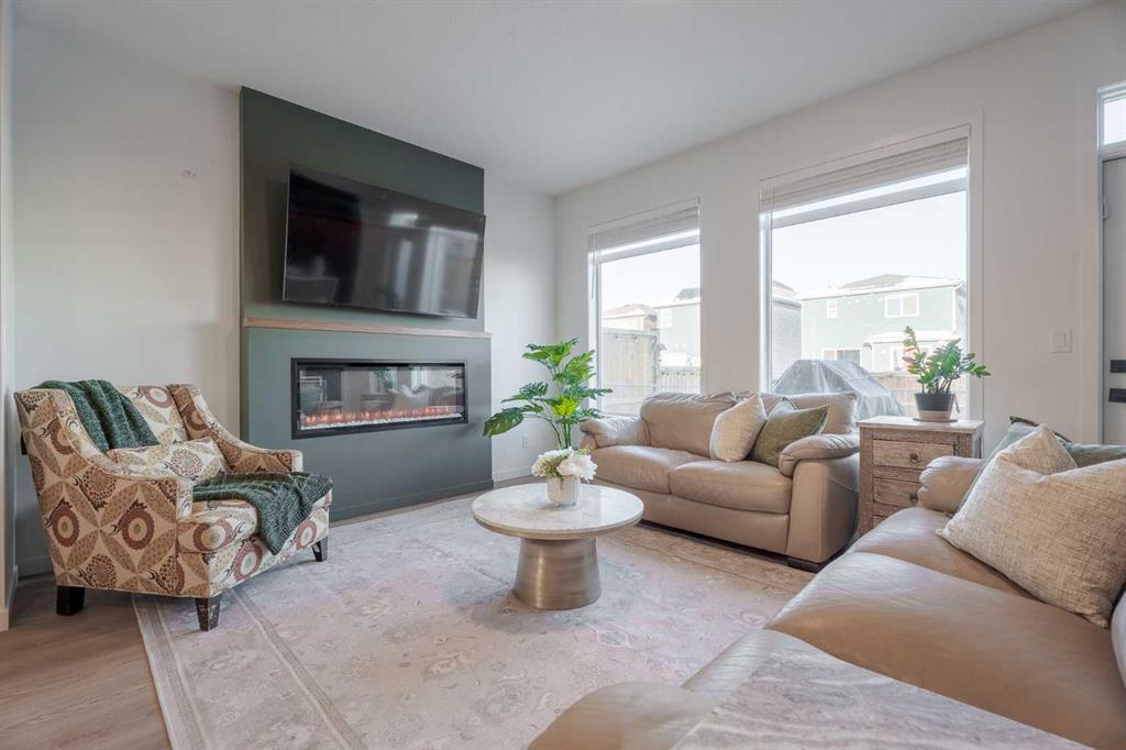 OPEN HOUSE IS CANCELLED. Welcome to an extraordinary residence in the prestigious southwest community of Belmont, where refined design and modern luxury converge. This newer, custom-built home is a masterclass in sophisticated living, thoughtfully curated with impeccable upgrades and meticulous attention to detail throughout, offering a truly elevated lifestyle. Upon entry, you are welcomed by an elegant, on-trend palette that beautifully complements the home’s timeless, earthy aesthetic. The stunning great room is anchored by upgraded wide-plank flooring and a striking 50-inch linear electric fireplace, complete with a bespoke oak mantel—an inviting focal point for intimate evenings and refined entertaining alike. The kitchen is nothing short of exceptional, designed to inspire both form and function. Highlights include a generous walk-in pantry/ butler's pantry, a show-stopping oversized island adorned with upgraded quartz countertops, and a custom designer backsplash. Floor-to-ceiling oak cabinetry, enhanced with additional drawers and storage, pairs seamlessly with premium appliances, including a gas range and counter-depth refrigerator, showcasing craftsmanship of enduring beauty. The main level is completed by a discreet and stylish powder room, ideal for guests. Upstairs, the private primary retreat is bathed in natural light and features a spacious walk-in closet with an oversized shower. Two additional well-appointed bedrooms share a beautifully designed family bathroom, offering comfort and elegance for family members or guests. The upper-level laundry room elevates everyday living with full-length hanging space and solid shelving, transforming routine tasks into a refined experience. The professionally designed lower level extends the home’s versatility, featuring a spacious family room—currently staged as a private gym—along with a four-piece bathroom and a fourth bedroom, perfect for guests or extended family. Thoughtfully upgraded lighting throughout the home creates a warm, inviting ambiance, enhancing every space. Outside, the fully landscaped yard adds exceptional curb appeal and provides a welcoming outdoor setting ideal for entertaining and relaxation. Set within the sought-after Belmont community, this home offers an unparalleled lifestyle defined by contemporary design, functional elegance, and a strong sense of community. Residents enjoy scenic pathways, playgrounds, a forthcoming outdoor shopping centre, future recreation facilities, a library, and convenient access to major roadways including Macleod Trail and Stoney Trail—ensuring effortless travel to downtown Calgary and the Rocky Mountains. This is a rare opportunity to claim a truly luxurious haven in one of Calgary’s most exciting new communities. Please note: garage is extra deep over 26ft and approximately 11.5 ft wide allowing for most larger vehicles to park comfortably with additional storage opportunities... Note the double front driveway for additional parking!