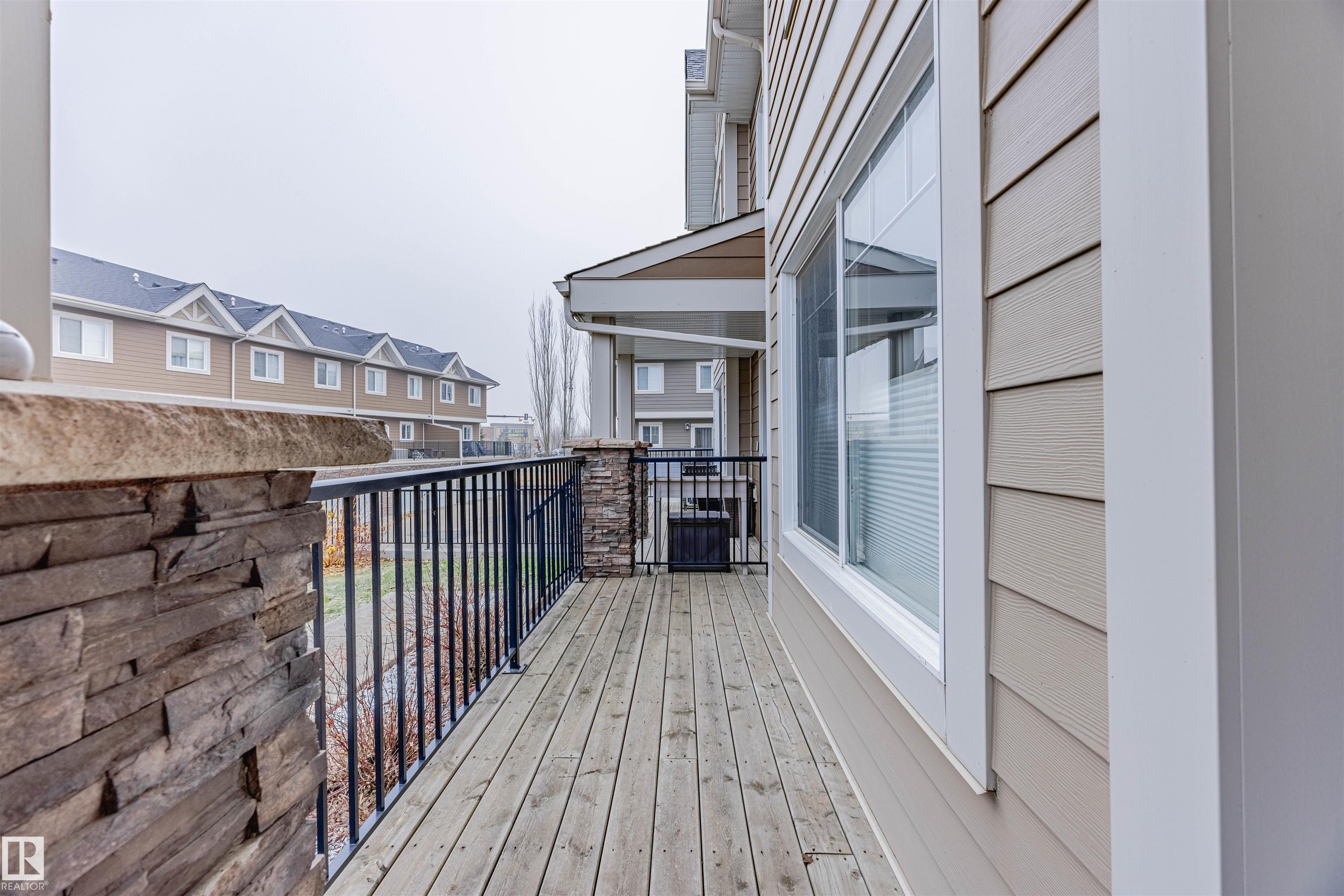 IMMACULATE AND BEAUTIFULLY UPGRADED TOWNHOUSE! PRIME WINDERMERE LOCATION! 1443 FT2 ABOVE GRADE PLUS 400+ FT2 IN THE F/F BASEMENT! DOUBLE ATTACHED GARAGE! Set at the back of the complex for added privacy and just steps from visitor parking, this home is ideally situated close to public transportation, schools, shopping, restaurants and the vibrant Currents of Windermere, with quick access to Terwillegar Dr and the Henday. Inside, enjoy hardwood flooring in the living room and ceramic tile in the kitchen, dining area, entry and baths. The spacious kitchen features abundant maple cabinetry with decorative moldings, quartz countertops, stainless steel appliances, glass subway tile backsplash and a large island. A generous primary bedroom with double-tiled-shower ensuite, two additional bedrooms, upper-level laundry and a versatile finished basement add to the appeal. The south-facing maintenance-free balcony with gas BBQ outlet and welcoming front verandah complete this exceptional location-focused home.
