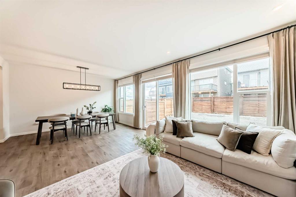 Welcome to this exceptional home built by Cedar Glen in Livingston, 2024 with over 2250 sq ft above and over 970 sq ft below in a 2 bdrm FULLY FINISHED LEGAL SECONDARY SUITE with its own separate side entrance, laundry and furnace, convenient for extended family or whatever you choose. This home is pristine, like new, with high ceilings, luxury vinyl plank flooring, 3 bedrooms, an office, flex space, a bonus room, and 2.5 baths upstairs. You won't be disappointed. Walking into the open floor plan, you will notice immediately the wall of windows from one side of the house to the other. The kitchen is perfectly equipped to entertain a large family, with extra counter space for preparing dinners. SS appliances, quartz counters, a large walk-in pantry, and then into a dining room that will accommodate a table for 10 or 12 for dinners? The living room will fit your big furniture and is adorned with a long electric fireplace with remote. Upstairs, the primary bedroom is large enough for your king-size bedroom suite, with a 5-piece ensuite, dual vanities, quartz counters, separate shower, private toilet and large walk-in closet. Then there are 2 more very nice-sized bedrooms, a bonus room, a laundry room, a flex space, and another 5-piece bathroom with dual vanities. The lower level legal basement suite includes 2 BEDROOMS, a 4-piece BATHROOM, a SPACIOUS KITCHEN with an eating area, a separate laundry and a large living room. Very convenient location! CLOSE to Parks, Pond, Walking trails, easy access to Stoney Trail, Grocery Stores (No frills, McDonald's, Gas, Mega Sanjha Punjab) and minutes to the Superstore, banks, Home Depot, Canadian Tire, Winners, just to name a few. EXCLUSIVE access to the Livingston Hub - The Homeowners Association (HOA), which features a splash park, tennis courts, basketball court, playground and more, a vibrant community centre with year-round recreational activities. Don't miss this opportunity to own an affordable modern home with a legal basement suite in a quiet, peaceful location.