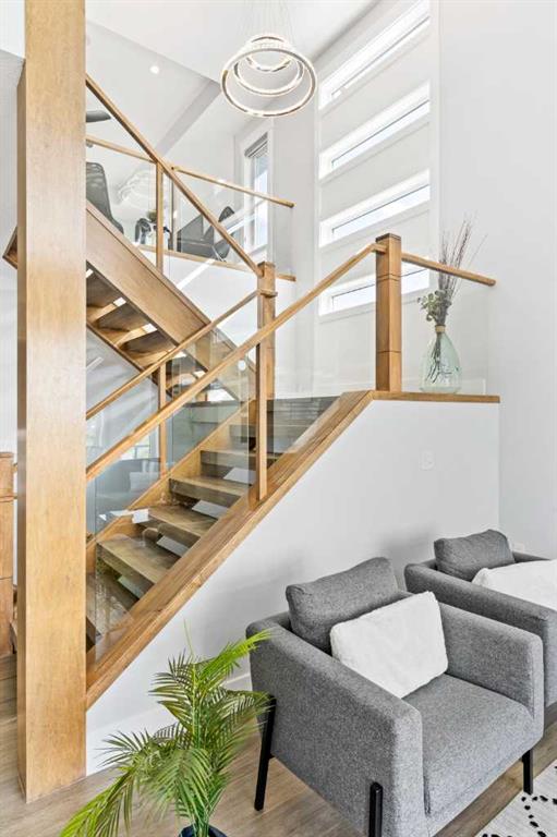 This home is currently under construction. Photos are for representation purposes only and are not of the actual property. Finishes, features, and specifications may vary. Welcome to a beautifully designed home that blends architectural drama with modern sophistication, featuring a triple car garage and a thoughtfully curated interior loaded with premium upgrades. The main and upper floors offer four bedrooms and three-and-a-half bathrooms, ideal for families seeking both space and functionality. The home impresses immediately with an open-to-below living room and an open-to-above bonus room, creating a striking sense of volume, light, and connection between levels. A cedar and oak upgrade package, paired with black and chrome hardware throughout, adds warmth and contemporary contrast, while an enhanced lighting package ensures the home feels bright and inviting at every turn. The main floor is finished with hardwood flooring and hardwood vents, complemented by 9-foot ceilings and 8-foot doors for a clean, upscale feel. The dream kitchen is a standout, featuring custom cabinetry, quartz countertops, a built-in wall oven and microwave, gas cooktop, oversized fridge/freezer, and dishwasher. A large island with eating bar is highlighted by a dramatic ceiling detail, while the walk-through pantry with MDF shelving and butler’s pantry add exceptional storage and functionality. The family room is anchored by a gas fireplace, creating a warm and welcoming gathering space. A mudroom with built-in bench and hooks completes the main level with everyday convenience. Upstairs, the layout is thoughtfully designed with four bedrooms, three bathrooms, a dedicated laundry room, and a spacious bonus room with tray ceiling. The primary suite offers a private retreat, featuring a tray ceiling, walk-in closet with MDF shelving, and a well-appointed ensuite with double vanity, soaker tub, and a fully tiled shower with bench and glass enclosure. Secondary bedrooms are generously sized, with convenient access to full bathrooms. Plush carpet throughout the bedrooms and upper-level living areas enhances comfort, while the laundry room with sink and base cabinetry adds practicality. The undeveloped basement provides a blank canvas for future customization—ideal for a recreation space, home gym, or additional living area tailored to your needs. Outside, the home is finished with a modern mix of fiber cement siding and smooth panel detailing, along with a rear deck perfect for enjoying the outdoors. Architecturally striking, thoughtfully upgraded, and designed for modern living—this home offers comfort, style, and long-term value in every detail.