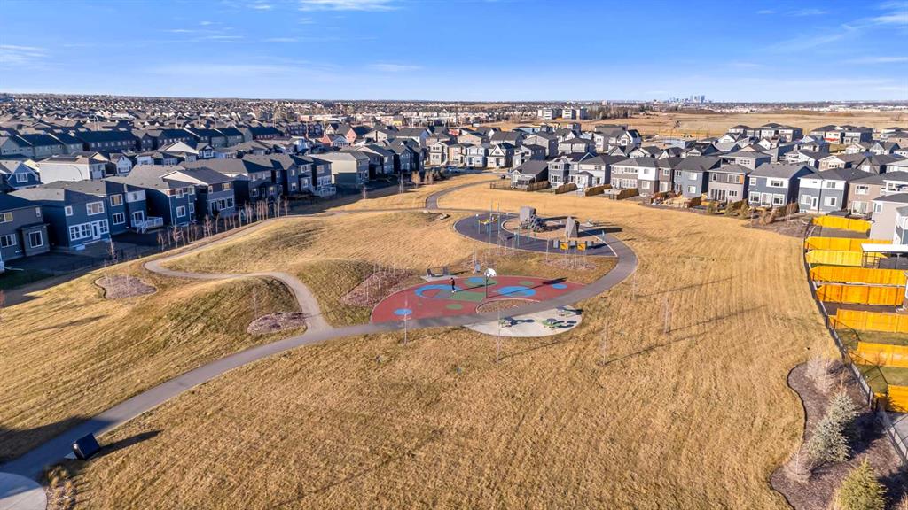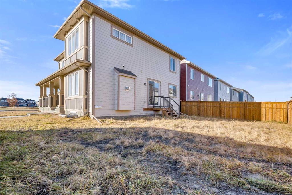 MAIN AND UPPER 9’ FT HIGH CEILINGS! Welcome to Yorkville, a vibrant new home community designed for families who value pride, comfort, and connection. This stunning home is filled with premium upgrades, abundant natural light, and large windows throughout. The open-concept floor plan showcases exceptional build quality and modern design. The main level features a spacious living room with a gas fireplace (tile facing and screen), a flex/den room ( converted to a Bedroom) , and an upgraded kitchen with full-height cabinets, stainless steel appliances, a chimney hood fan, and a pantry for extra storage. Enjoy seamless flow to the dining area and backyard patio. The entire main floor is finished with durable vinyl flooring — waterproof and scratch-resistant. Upstairs, the primary suite impresses with a five-piece ensuite bath and an oversized walk-in closet. Four additional bedrooms, a full bathroom, and convenient upper-floor laundry complete the level. The unfinished basement offers endless potential — with a 3-piece rough-in, two windows, and space ideal for a bedroom, recreation area, and flex room. Additional features include: Glazed front entry door panel Dual-glazed low-E vinyl windows 50-gallon gas power-vented water heater High-efficiency forced-air furnace R20 exterior wall insulation HRV (Heat Recovery Ventilation) system Upgraded carpeting Two exterior water taps Enjoy unobstructed views from both the main-level den and the bonus room. Perfectly located close to all amenities — shopping, schools, C-Train, Stoney Trail, Highway 2, and just minutes to the Calgary International Airport. A must-see property — come make this your dream home today!