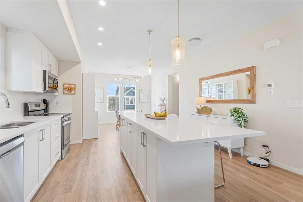 Welcome to this beautifully maintained end-unit townhouse in the vibrant, family-friendly community of Copperfield. Perfect for first-time buyers, young families, or investors, this home offers a functional layout, modern finishes, and versatile living spaces, with nearly 1,800 sqft of comfortable living space. The main floor features a bright, open-concept design with a welcoming fireplace in the living room, creating a cozy and inviting atmosphere. The well-appointed kitchen offers plenty of cabinetry and counter space, while the generous dining area is perfect for everyday living and entertaining. A convenient 2-piece bathroom completes this level. Upstairs, you'll find three comfortable bedrooms, including a spacious primary bedroom with its own 4-piece ensuite. Two additional bedrooms and another full 4-piece bathroom provide ample space for family, guests, or a home office. The upper level also includes a laundry room, adding extra convenience for everyday living. The lower level adds even more flexibility with a large office or multi-purpose room, ideal as a home workspace, gym, or recreation area. A 3-piece bathroom adds additional convenience. The home also features an oversized attached garage and a concrete driveway, providing parking for up to 4 vehicles and extra storage space. This property is perfectly located for families: the local school is just a 6-minute walk (1-minute drive) away, while the Copperfield Tennis Courts and Copperfield Community Center are only 2 minutes by car, making recreation and activities easily accessible. Residents also enjoy proximity to parks, playgrounds, walking paths, shopping, and major roadways, combining convenience with a quiet neighbourhood atmosphere. Don’t miss this fantastic opportunity to own a well-located townhouse in one of Southeast Calgary’s most desirable communities.