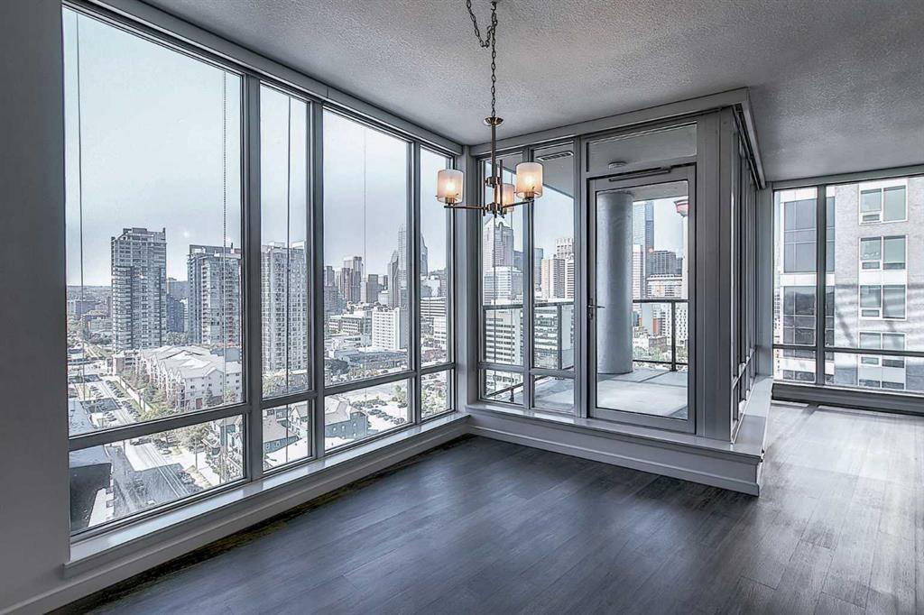 Exceptional 16th-Floor Unit with Breathtaking Panoramic Views! This beautifully appointed unit on the 16th floor offers stunning, uninterrupted views of both the mountains and downtown skyline. Ideally situated within close proximity to the LRT and the MNP Community & Sport Centre, this residence combines convenience with luxury. The upgraded interior features high-quality finishes, including maple cabinetry, granite countertops, stainless steel appliances, luxury vinyl flooring, tile, and floor-to-ceiling windows that maximize natural light and panoramic vistas. The entryway includes a walk-in coat closet with custom built-in storage for added organization. A dedicated home office area is integrated into the layout, complete with a granite work surface. The in-suite laundry room offers additional storage space for everyday practicality. The generously sized second bedroom enjoys remarkable views and includes a walk-in closet with a convenient cheater door leading to a well-appointed bathroom featuring a large walk-in shower. The kitchen, with its modern design, opens seamlessly to the dining and living areas, creating an ideal space for entertaining. The private balcony extends the living space outdoors, offering an excellent setting for barbecuing or simply taking in the spectacular scenery. The comfortable living room provides an inviting atmosphere for relaxation and social gatherings. The primary bedroom is a peaceful retreat, showcasing expansive views and a walk-through closet that leads to a luxurious four-piece ensuite bathroom. Residents also enjoy access to a well-equipped amenity center, which includes an exercise room, hot tub, sauna-equipped dressing rooms, a gathering space with pool table, theater room and patio access, one being the rooftop! Additional features include assigned storage and one titled parking stall. Located just a couple of blocks from the Stampede Grounds and the C-train station, this prime location offers easy access to downtown amenities, dining, entertainment, and much more. Book your showing and come on Buy! (Current tenant willing to stay if looking for an investment property. The photos are from previous now tenant occupied)