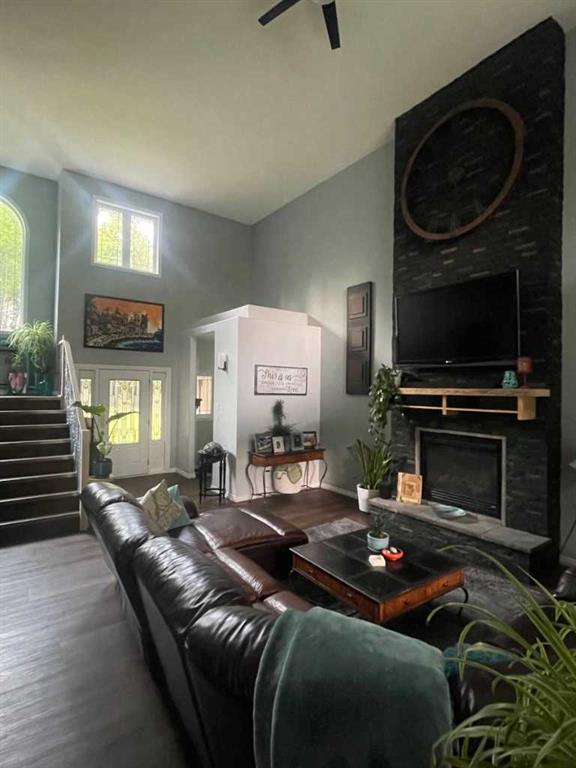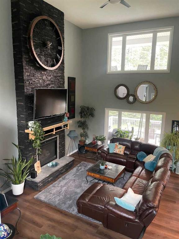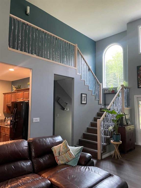 Click brochure link for more details** This wonderful private home is on 20 acres located on a dead end road 20 minutes east of Edson, there is a small creek and a dug out on the property. There are bike and quad trails through the acreage and half a mile down the road is crown land with more beautiful trails and creeks, the McLeod river is a 3-min drive, perfect for the family that enjoys the outdoors. The executive custom home was built 2005, it is 1350 sq ft on the main level. Enter through a covered front deck to the open concept living room that flows to the kitchen and dining area to create a cozy vibe even with the high ceilings. All the appliances have been recently replaced and complement the new flooring and granite countertops in the kitchen nicely. Down the hall is a renovated 3pc bathroom, two large bedrooms and main floor laundry. Looking out the large dining and living room windows is the partially covered main deck leading down to the back yard and fire pit. The entire 650 sqft upstairs is master bedroom, it boasts a walk in closet, 4 pc ensuite with free standing tub, large glass and tile shower and extra large vanity. The French doors open to a private covered deck looking out towards beautiful sunset. The fully finished walkout basement offers two bedrooms, a large utility room, storage room, and a newly renovated three-piece bathroom. Topping the lower level off is the perfect area for entertaining. This area features a cozy, gas, fireplace, TV and entertainment area with large windows that give an open look and feel to the backyard. The jewel of this area is a full wet bar with a custom yellow cedar live edge top and floating wine rack. The garage is just over 900sq ft with an RV bay that will accommodate a fifth wheel or holiday trailer, as well as two vehicles with lots of room for bikes and sleds. Garage is 220 wired and has hot and cold water plus another tap at the door for the pressure washer. The 40x40x16 shop is across the yard and is tin inside and out with full mezzanine on one side, 220 wired for welder, lift and air compressor. It’s perfect for any repair or storage area. Attached to the shop is a huge 30x40 leanto.