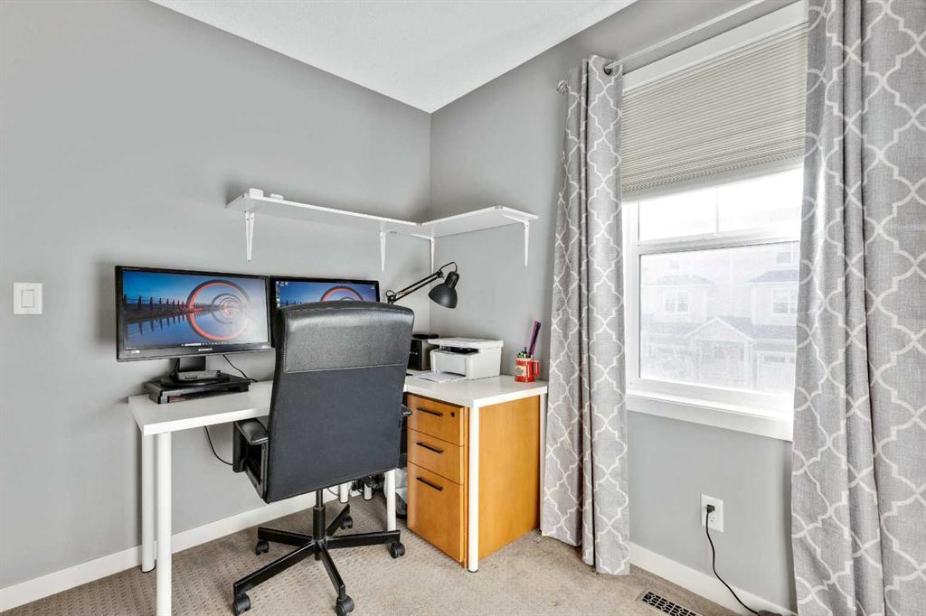 Welcome to unit #1603 located at The Sonoma of Sage Hills! This bright and beautiful three-bedroom unit backs onto a scenic ravine, offering privacy, natural views and clear pride of ownership throughout. Featuring three full bathrooms plus a convenient half bath, this home combines thoughtful upgrades with functional living space. There is a bright and open main living area with a well-appointed kitchen featuring stainless steel appliances, gas range and quartz countertops. There is also additional flex space on the main floor, perfect for a home office or sitting area. There are three bedrooms on the second floor, including the spacious primary bedroom complete with a private ensuite bathroom and a walk-in closet. There is an additional full bathroom to serve the other two bedrooms on this floor. The lower level is very bright and inviting featuring upgraded "sunshine package" windows allowing in a plethora of natural light. The basement was professionally finished with extra insulation for added comfort, quiet and energy efficiency. The basement also includes a spacious, functional laundry room and excellent storage options. Recent upgrades include: a newer furnace (2023), and a newer garage door and opener. Conveniently located near ample shopping, walking paths and everyday amenities, with two new schools approved for the community- this property will appeal to a wide range of lifestyles and needs.