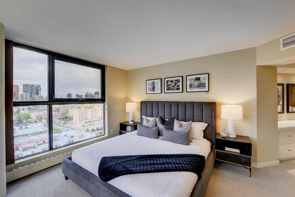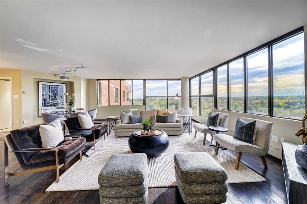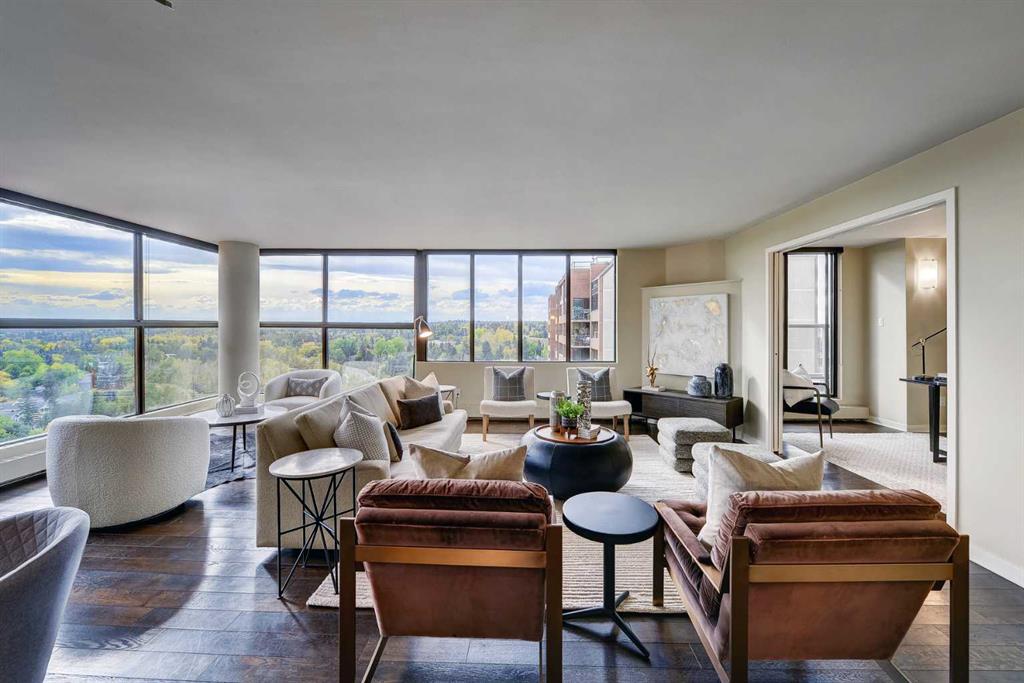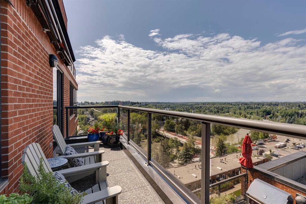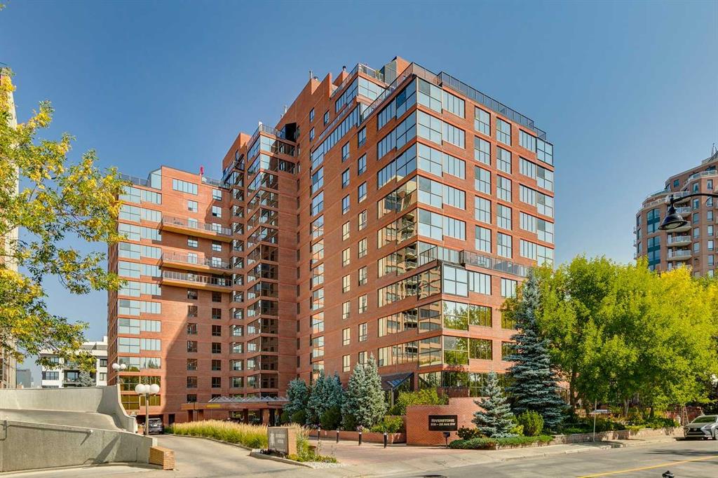 VIEWS! VIEWS! VIEWS! Your “Nest in the Sky” Awaits. Step into luxury in this exquisite sub-penthouse boasting breathtaking panoramic views of the River Valley, the majestic Rocky Mountains, and Calgary’s shimmering City Skyline. Prime Location Ideally situated in the heart of MISSION. Enjoy a short STROLL to vibrant 4th Street with it's cafes & restaurants, the prestigious Glencoe Club, and the scenic River Pathway System. This is inner-city living at its finest with Sun-Drenched Sophistication. The OPEN CONCEPT layout is bathed in natural light from expansive WEST and SOUTH-facing walls of windows. From the Living Room, Dining Area, and Kitchen, enjoy stunning vistas at every turn. The Kitchen offers easy entertaining featuring Island Breakfast bar, Stainless steel appliances + Walk-In Pantry. Rest and Recharge in the spacious Primary Bedroom which accommodates a king-size bed, complemented by a walk-in closet and a 4-piece ensuite. DAY & NIGHT, the downtown views create a truly magical ambiance. Flexible Living Space offered by the charming Second Bedroom with a custom Murphy bed + Bookshelves. In-unit Laundry and dedicated Office space, provide versatility and comfort for modern lifestyles. Outdoor Bliss is yours with one of the RARE private terraces in the building, complete with awning. The perfect sanctuary for your morning coffee or sunset cocktails — all framed by SOUTH & WEST mountain, river and skyline views. Convenience at Its Best Includes Two Titled, underground parking stalls (Side by Side) and an assigned storage locker. Riverstone is a prestige, meticulously maintained building, which features an Exceptional roster of Amenities: 24/7 Concierge & full-time Building Manager, Indoor pool with Hot tub & Saunas, Tennis Court, Fully-equipped Fitness, Library/Games room & Party Lounge with Kitchen, Heated Underground Visitor Parking & Car Wash Station, plus a Strong reserve fund and professional management. Live Where Calgary Comes Alive! Nestled in one of the city’s most desirable communities.