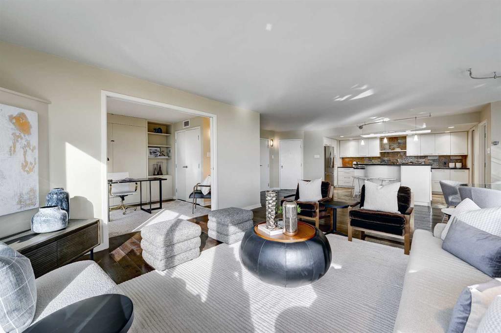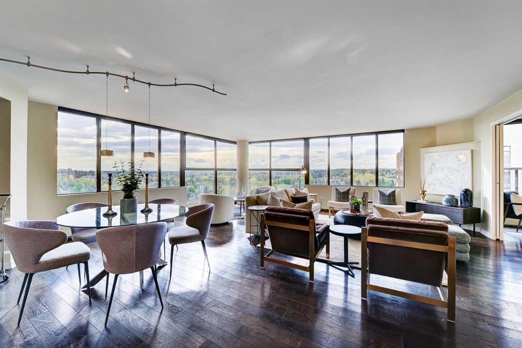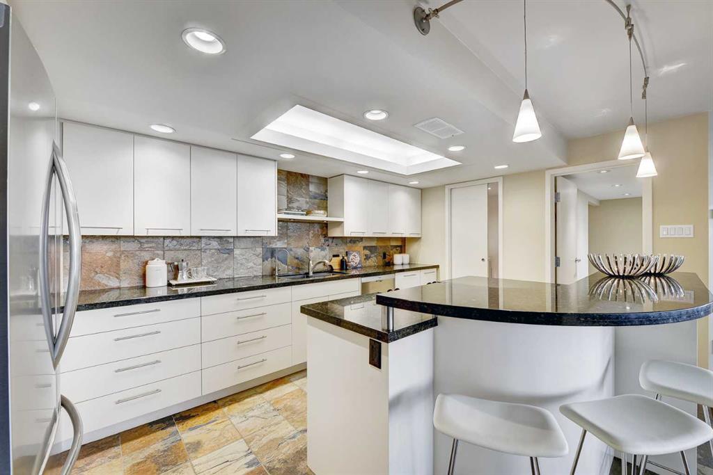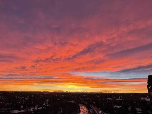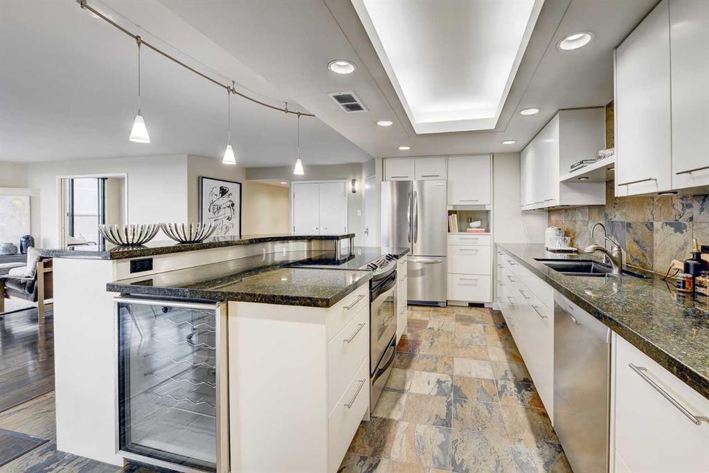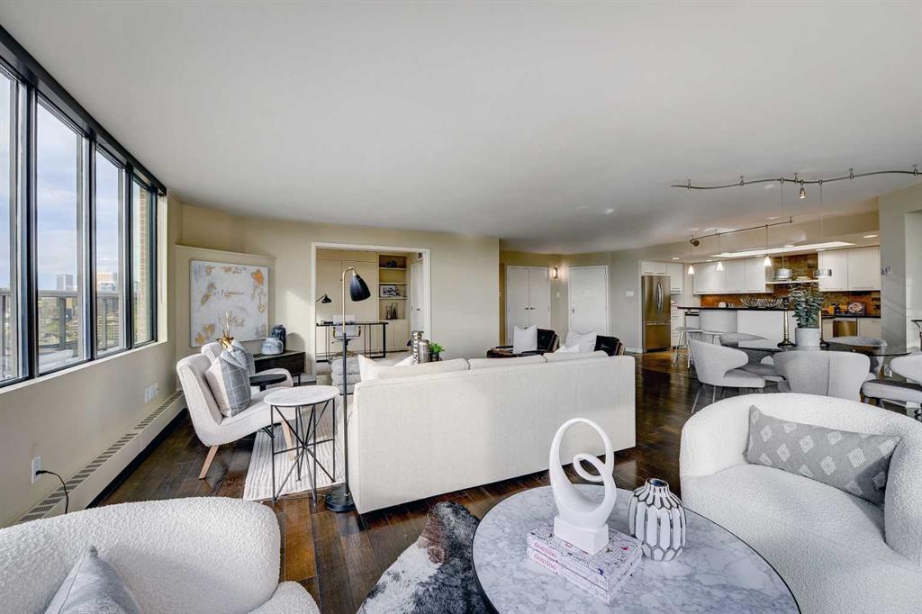 VIEWS! VIEWS! VIEWS! Your “Nest in the Sky” Awaits. Step into luxury in this exquisite sub-penthouse boasting breathtaking panoramic views of the River Valley, the majestic Rocky Mountains, and Calgary’s shimmering City Skyline. Prime Location Ideally situated in the heart of MISSION. Enjoy a short STROLL to vibrant 4th Street with it's cafes & restaurants, the prestigious Glencoe Club, and the scenic River Pathway System. This is inner-city living at its finest with Sun-Drenched Sophistication. The OPEN CONCEPT layout is bathed in natural light from expansive WEST and SOUTH-facing walls of windows. From the Living Room, Dining Area, and Kitchen, enjoy stunning vistas at every turn. The Kitchen offers easy entertaining featuring Island Breakfast bar, Stainless steel appliances + Walk-In Pantry. Rest and Recharge in the spacious Primary Bedroom which accommodates a king-size bed, complemented by a walk-in closet and a 4-piece ensuite. DAY & NIGHT, the downtown views create a truly magical ambiance. Flexible Living Space offered by the charming Second Bedroom with a custom Murphy bed + Bookshelves. In-unit Laundry and dedicated Office space, provide versatility and comfort for modern lifestyles. Outdoor Bliss is yours with one of the RARE private terraces in the building, complete with awning. The perfect sanctuary for your morning coffee or sunset cocktails — all framed by SOUTH & WEST mountain, river and skyline views. Convenience at Its Best Includes Two Titled, underground parking stalls (Side by Side) and an assigned storage locker. Riverstone is a prestige, meticulously maintained building, which features an Exceptional roster of Amenities: 24/7 Concierge & full-time Building Manager, Indoor pool with Hot tub & Saunas, Tennis Court, Fully-equipped Fitness, Library/Games room & Party Lounge with Kitchen, Heated Underground Visitor Parking & Car Wash Station, plus a Strong reserve fund and professional management. Live Where Calgary Comes Alive! Nestled in one of the city’s most desirable communities.