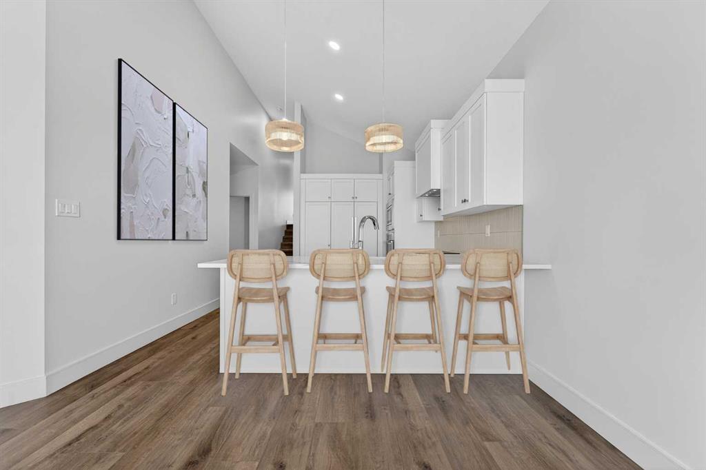 Welcome to the Glenbarr bi-level by Stranville Living Master Builder, located in the exciting new community of Blackwolf, just a short two-minute walk from Legacy Park — and when I say close, I mean you can grab your skates or pickleball paddle and be there in no time. Legacy Park truly is one of the best outdoor spaces in Lethbridge, featuring an outdoor skating rink, pickleball and basketball courts, a skate park, spray park, and beautiful walking paths that wrap around the scenic pond. Living here means your weekends practically plan themselves. Step inside and you’re immediately greeted by the soaring vaulted ceilings that make this home feel bright, open, and far larger than you’d expect. The kitchen is a standout and showcases Stranville’s signature finish quality, complete with a paneled Fisher & Paykel fridge, paneled dishwasher, sleek induction cooktop, built-in oven and microwave, quartz countertops, slow-close cabinetry, and convenient bar seating. It’s modern, clean, and thoughtfully designed for both everyday living and entertaining. Just off the kitchen is the dining area, positioned perfectly beside sliding glass doors that lead out to your future deck — an ideal extension of your living space during the warmer months. The adjacent living room features an oversized window that floods the main floor with natural light, creating a warm and inviting atmosphere. This level also includes two generously sized bedrooms along with a well-appointed four-piece bathroom, offering flexibility for family, guests, or a home office setup. Upstairs, you’ll find the laundry conveniently located near the private primary retreat. The primary bedroom continues the vaulted ceiling design and features another oversized window, enhancing the sense of space and light. The ensuite is finished with dual vanities, a walk-in shower, and an impressive 11-foot-long walk-in closet that provides plenty of storage without compromise. With alley access at the rear and Stranville’s elevated finish standards throughout, this brand-new home delivers the perfect balance of thoughtful design, modern style, and an unbeatable location in one of Lethbridge’s most recreation-focused communities. This home is virtually staged.