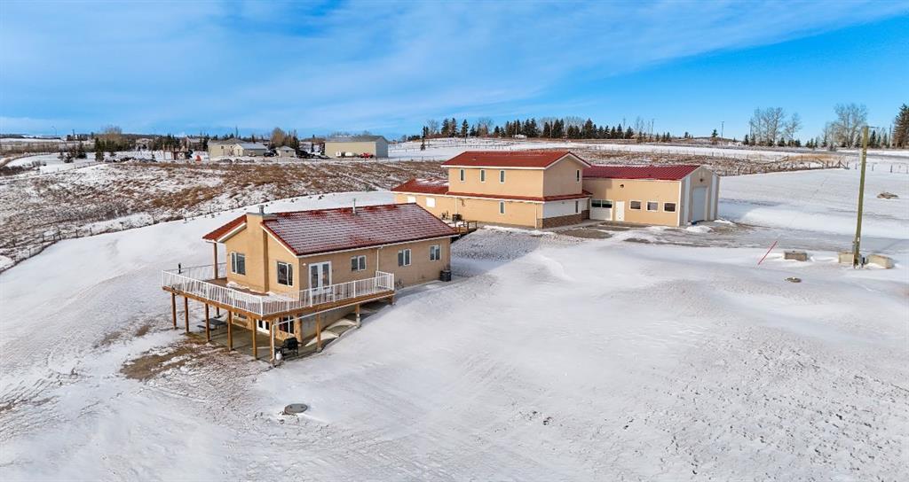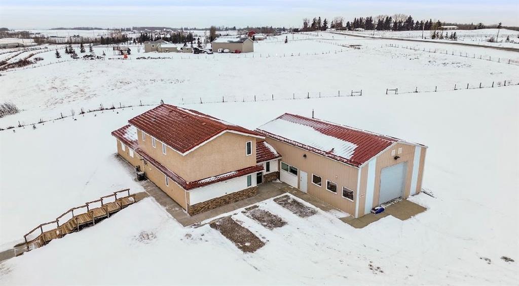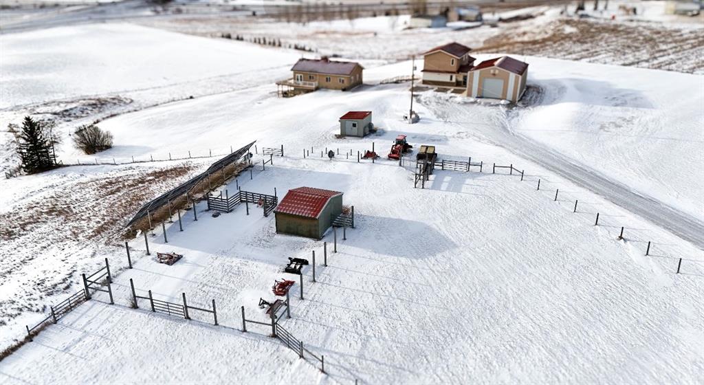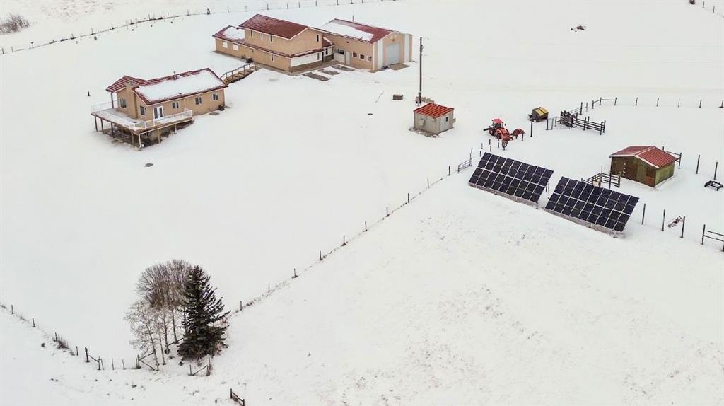 ** OPEN HOUSE Sunday March 15th 2pm-4pm ** Amazing 24 acres with 3 bed walk out bungalow and rare commercial infrastructure (almost 4,000sf), located just minutes south of Calgary! Perfectly situated with easy access to Okotoks, and High River too. Previously a licensed retail operation for 14 years with a purpose-built COMMERCIAL COMPLEX. Suitable for a VARIETY OF BUSINESSES or live/work uses (subject to County approval). Land is cross fenced, hayed annually, and offers SUBDIVISION POTENTIAL (subject to approval). Exceptional water security includes year-round headwater spring feeding three interconnected ponds with registered agricultural water rights, a well, septic tank and 3,000-gallon cistern, multiple hydrants, and stock waterer. Power systems include Fortis power (25kVA), Kubota diesel standby generator (22kVA) with auto start, and 19.8 kWp solar array producing approx. $3,200/year in electrical savings. Property includes PRIMARY RESIDENCE (walkout 3-bedroom bungalow) and Commercial Complex with connected 2-STOREY building with fire-rated doors and dedicated exterior exit, a 1-storey building, and shop/warehouse with 12’ x 12’ overhead door (immaculately maintained and clean). Buildings have hydronic heating with HEATED CONCRETE FLOORS, A/C and hail-resistant roofing. SECONDARY SUITE potential (subject to approval). Other property features include a powered hay shed, gated entry with power, monitored security, stunning views and school bus access. A rare, infrastructure-rich opportunity close to Calgary.