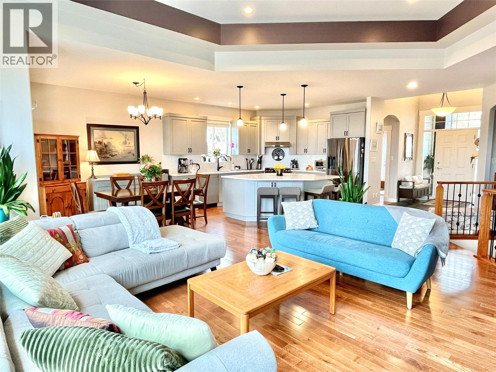 PRICED BELOW BC ASSESSED VALUE! Welcome to your dream home at 1615 Sunrise Road in the prestigious Kirschner Mountain neighborhood of Black Mountain, Kelowna, BC! This stunning walk-in rancher with a fully above-ground lower level offers 2715 sq ft of bright, versatile living space with 520 sq ft unfinished storage area, totaling 3235 sq ft . The main floor features an inviting open layout, including the spacious primary bedroom, laundry facilities, and two bathrooms. A short flight of stairs leads to the expansive lower level, complete with three additional bedrooms and a bathroom, large storage room, plus abundant natural light from large windows and direct walkout access to the backyard. Step outside to discover beautifully maintained landscaping that enhances curb appeal. The property boasts incredible sweeping valley views that capture the essence of the Okanagan—panoramic vistas of rolling hills, orchards, and distant mountains that change with the seasons. Practical features include a 2-car garage for vehicles, and storage. Located in one of Kelowna's most sought-after areas, you're just minutes from schools, shopping, golfing, and skiing. This impeccably cared-for home combines privacy, natural beauty, and modern comfort in a prime location—ideal for families, retirees, or anyone seeking the perfect Okanagan lifestyle. Don't miss this rare opportunity! Schedule your private viewing today and experience the magic of elevated living at 1615 Sunrise Road.