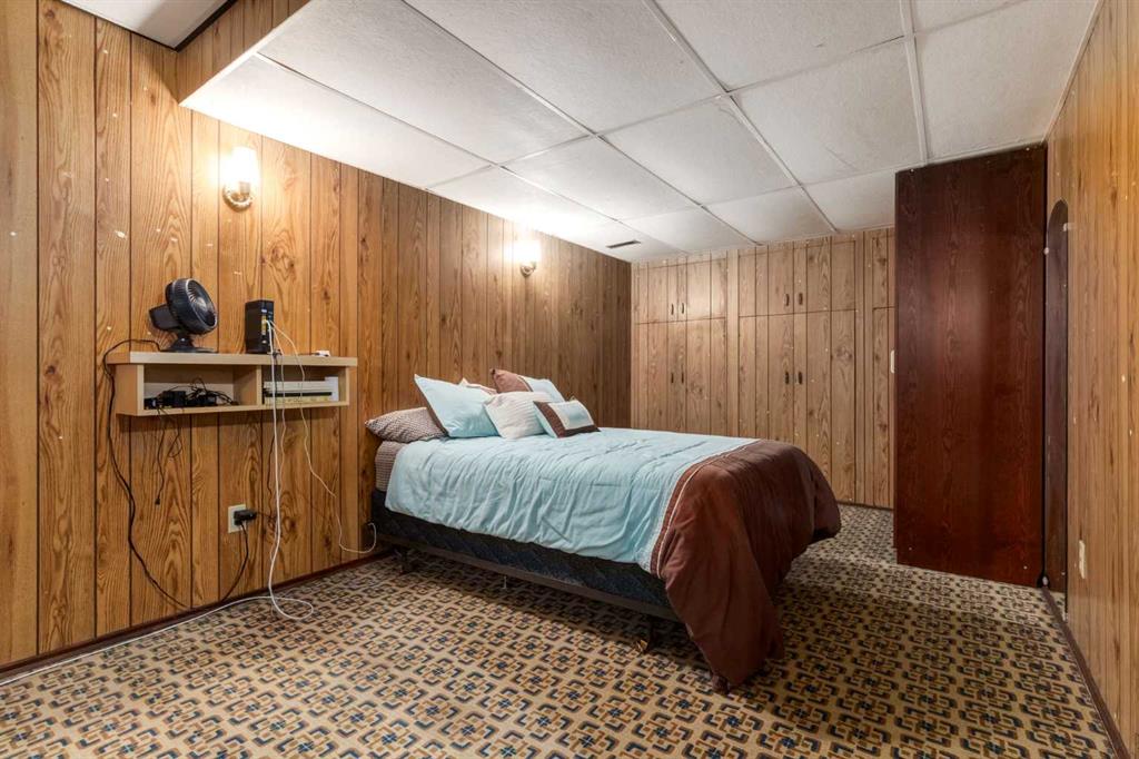 This charming 4-bedroom, 2.5-bathroom fully developed family home is located in the highly sought-after community of Braeside. The home boasts stunning hardwood floors on both the main level and the upper-level bedrooms. The spacious primary bedroom includes a convenient 2-piece ensuite, while two additional bedrooms and a 3-piece bathroom complete the upper level. The main level features a welcoming foyer, a cozy living room, a dining room, and an eat-in kitchen. The walk-up level offers another 4-piece bathroom, an extra bedroom, and a generously sized family room. The basement includes a rec room along with a laundry and utility area. Recent upgrades include a newer roof, furnace, and hot water heater. The property sits on a large south-backing lot with a heated double detached garage and RV parking accessible from the back lane. Ideally situated, this home is just steps away from the school and Braeside Community Center.