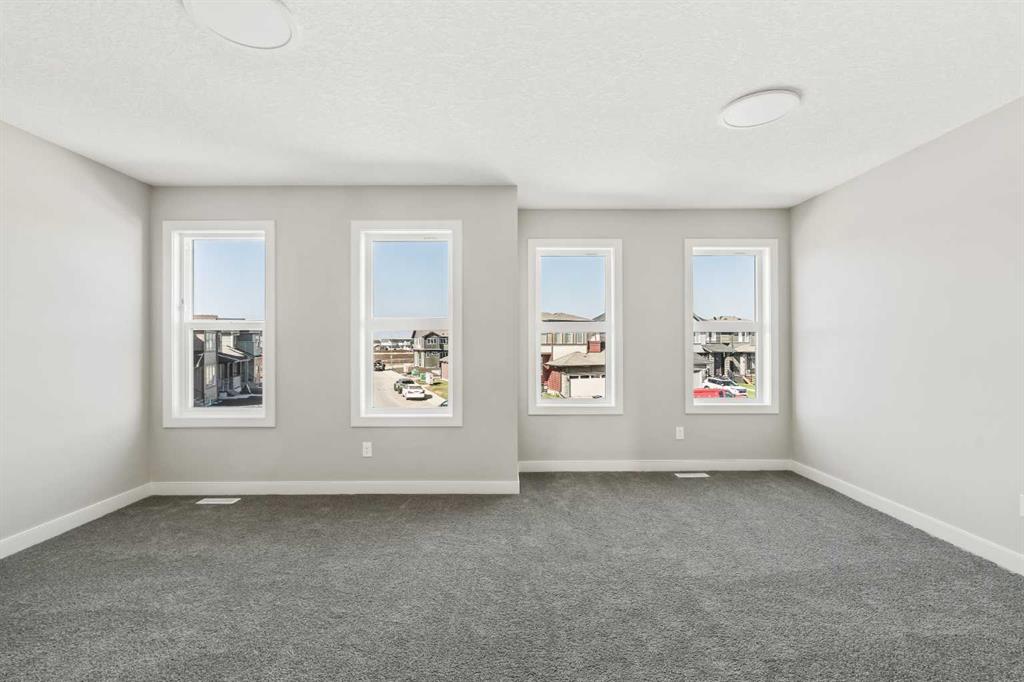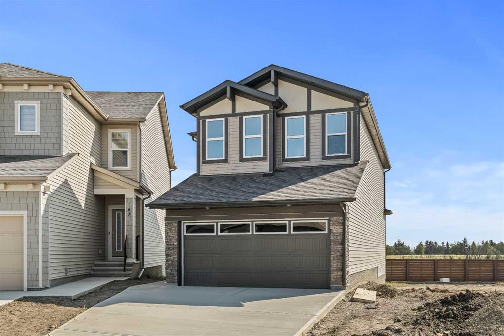 Welcome to your beautiful, brand-new Alliston build featuring 4 bedrooms, 3 full bathrooms, nearly 2,100 sq. ft. of expertly designed living space, and a side entrance to the basement, perfect for future development. This home is ideally located on a pie lot on a quiet crescent, where kids can safely play outside and you can enjoy peaceful mornings with a cup of coffee while watching the sunrise from the views out your East backyard windows. Step inside and be greeted by stylish vinyl plank flooring and airy 9-foot ceilings that flow through the open-concept main floor. The chef-inspired kitchen boasts floor-to-ceiling cabinetry, quartz countertops, a spacious island, and a sleek stainless steel appliance package with a gas stove. A dream for anyone who loves to cook and entertain. The adjoining dining area and living room are bright and welcoming, anchored by a striking electric fireplace that serves as the space's focal point. A main-floor bedroom and a complete bathroom offer flexibility for guests, a home office, or convenient main-floor living. The mudroom off the 19x20 garage (with an additional 4' for stair access) ensures there's ample room for parking two vehicles. Upstairs, the primary suite is your private retreat, featuring a walk-in closet with natural light and a spa-inspired ensuite with a large shower and soaker tub. Two additional spacious bedrooms, another full bathroom, a convenient laundry room, and a front-facing bonus room complete this well-planned upper level. The unfinished basement, with its separate side entrance, offers loads of potential. It's already equipped with bathroom rough-in and wet bar rough-in with water lines, giving you a head start on future development possibilities. Located in the vibrant community of Belvedere in Calgary's southeast, this home offers the perfect blend of urban convenience and relaxed suburban living. With nearby parks, schools, shopping, and easy access to major routes, Belvedere is a welcoming, family-friendly neighbourhood where you can truly put down roots. Photos are representative and are of the same model home with similar colour pallet/finishings. RMS has been applied to builder blueprints. Taxes to be assessed.