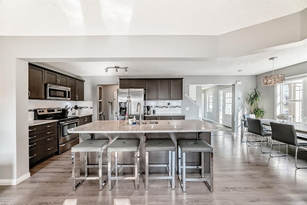 Welcome to Southwinds in Airdrie. This charming detached home is situated on a desirable corner lot with just under 1,800 sq. ft. of living space, offering 4 bedrooms and 2.5 bathrooms. Perfect for growing families, first-time buyers, or investors, this property combines comfort, function, and style. The main floor features a cozy gas fireplace, convenient laundry, and a bright, open layout where natural sunlight pours in throughout the day. Additional highlights include air conditioning, a double attached garage, lots of yard space, and a welcoming wrap-around porch—ideal for relaxing or entertaining. The undeveloped basement provides endless possibilities to customize to your needs, while thoughtful touches like modern light fixtures and designer wallpapers add a stylish finish. All this in a family-friendly community, within walking distance to schools, shopping, and everyday amenities, plus only 10 minutes to CrossIron Mills and 17 minutes to Calgary International Airport.