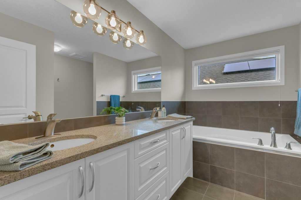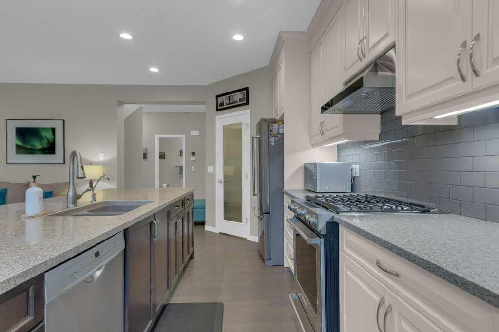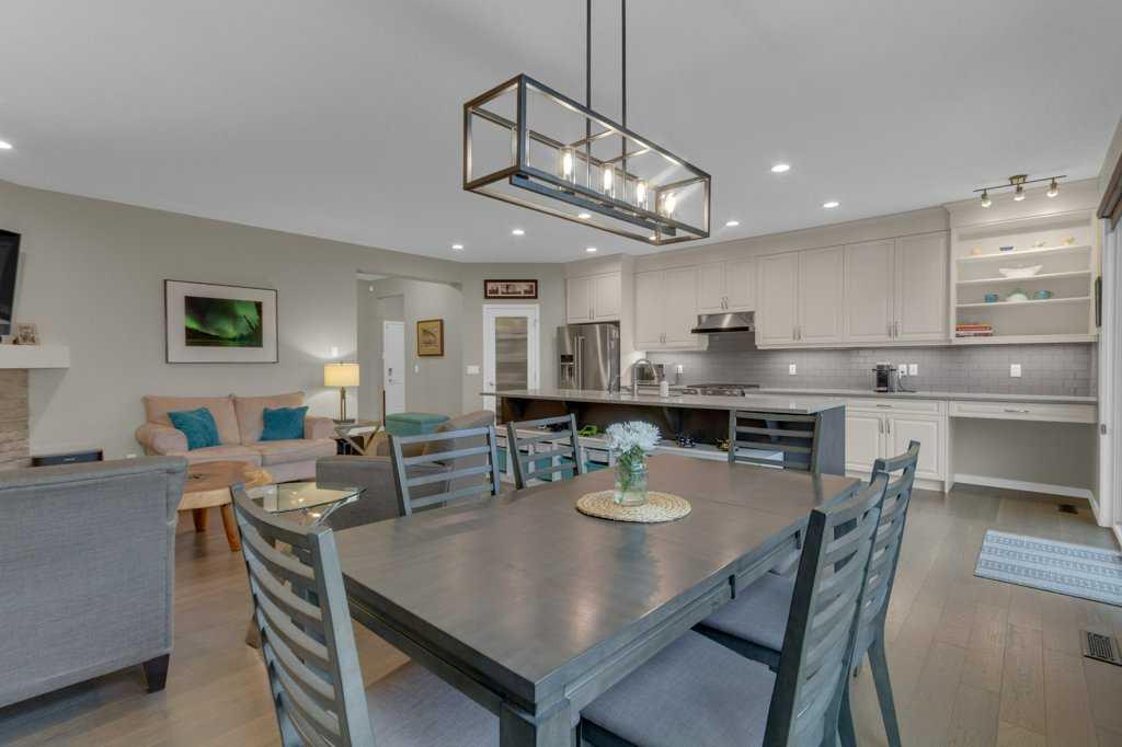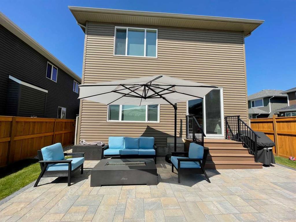 Welcome to The Cedarglen Huxley—offering over 2,000 sq ft of beautifully designed living space, full lake access, and a sunny south-facing backyard. Built by Cedarglen Homes, this property features 9’ ceilings and hardwood flooring throughout the main level. The stunning kitchen is the heart of the home, complete with an impressive 11’ quartz island, extended-height cabinetry, stainless steel appliances, and a convenient walk-through pantry. Kitchenaid dual fuel range (electric oven with natural gas stove top) with a high CFM range hood for a gas range with furnace interlock. The open-concept layout flows seamlessly into the dining area and cozy family room with fireplace, while a mudroom and 2-piece bath complete the main floor. Upstairs, you’ll find a spacious bonus room, laundry, and three bedrooms, including a generous primary retreat with a walk-in closet and spa-inspired ensuite featuring dual sinks, a soaker tub, and a frameless ensuite shower with upgraded bathroom ventilation. The unfinished basement offers excellent potential with a smart, open layout and utilities tucked away—ready for your custom development. This home has been thoughtfully upgraded and meticulously maintained over the years, including the addition of air conditioning and a built-in vacuum (2018), gemstone exterior architectural lighting (2020), and a beautifully finished stone patio with a plumbed gas line for a fire table along with backyard irrigation (2021). Recent improvements include fresh exterior paint (2023), a new Bradford & White hot water tank and professional radon mitigation system (2024), and Llumar UV privacy window film with a 10-year warranty (2024). In 2025, further enhancements were completed, improved attic airflow and insulation topped up to R60, plus garage updates including a new spring (2024) and bottom seal (2025). Additional features include and a front security camera system with local storage and convenient remote access. A perfect blend of style, comfort, and long-term value in a sought-after lake community—this home is truly move-in ready.