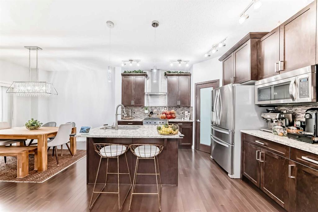 ( OPEN HOUSE Saturday Oct 18th - 1 pm to 3:30 pm ) Welcome to 165 Hillcrest Drive SW, Airdrie — a home that blends family comfort with modern upgrades, in one of the Top 5 most desirable communities in Airdrie. This 2-storey with nearly 2,500 sq. ft. of developed space offers all the style, space, and versatility today’s families are looking for. The main floor sets the tone with a bright, open kitchen–dining–living area. Rich espresso cabinetry, quartz countertops, and a working island create the perfect hub for family meals and entertaining. Chefs will love the gas oven and corner pantry for added storage. The living room easily fits a large sectional and features a cozy gas fireplace. Step outside to a partially covered deck, with gas hookup for your BBQ — ideal for year-round barbecuing and relaxing evenings. A practical mudroom and 2-piece bath complete this level. The heated 2 car attached garage adds security, comfort and convenience. Upstairs, you’ll find a spacious bonus room — the perfect retreat for movie nights or a kids’ hangout. Full-size laundry (with floor drain for peace of mind) sits conveniently on the same floor as three bedrooms. The primary suite is a true retreat with a spa-like 5-piece ensuite and a large walk-in closet. Make you way downstairs to the finished basement ( with permits) that boasts your 4th bedroom, a 4 pc bath, living room area and the "walk out to grade" entry. With extras like a High efficiency furnace and hot water tank, and central A/C, this home is as functional as it is beautiful. And all of this is located in Hillcrest, one of Airdrie’s most desirable family communities — close to schools, parks, pathways, and quick access to Calgary. The perfect family 4 bedroom home . At this price...this property is ready to take off.