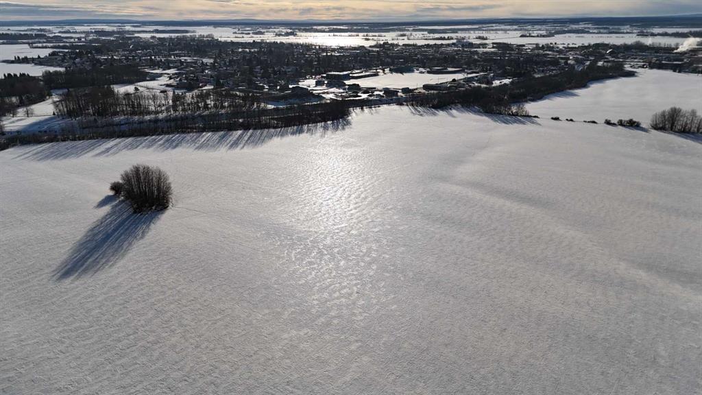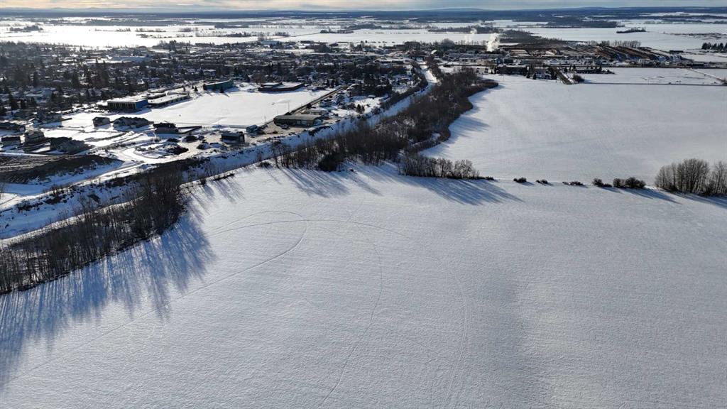 165.13 acres located within the Town of High Prairie municipal boundaries, consisting of two titles totaling approximately 141.34 acres and 23.79 acres, zoned Urban Reserve and currently in ongoing agricultural production. The land is primarily cultivated with intermittent treed areas and features the West Prairie River cutting diagonally through a portion of the property, adding natural character and landscape diversity. Urban Reserve zoning allows for continued agricultural use along with permitted uses such as accessory buildings, agriculture, greenhouse/market garden operations, public and utility uses, solar energy systems, telecommunication towers and wind energy conversion systems, with discretionary uses including campgrounds, a single dwelling unit, home occupation and RV storage facilities, subject to municipal approval. A rare opportunity to acquire a large, contiguous landholding within town limits offering agricultural utility today with long-term strategic positioning.