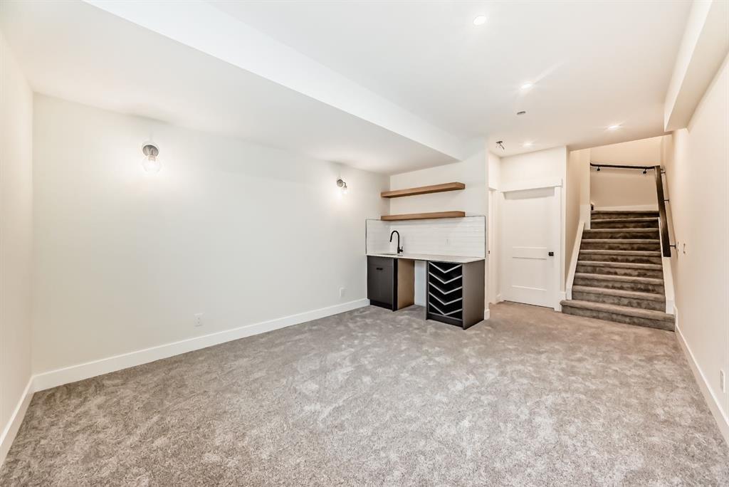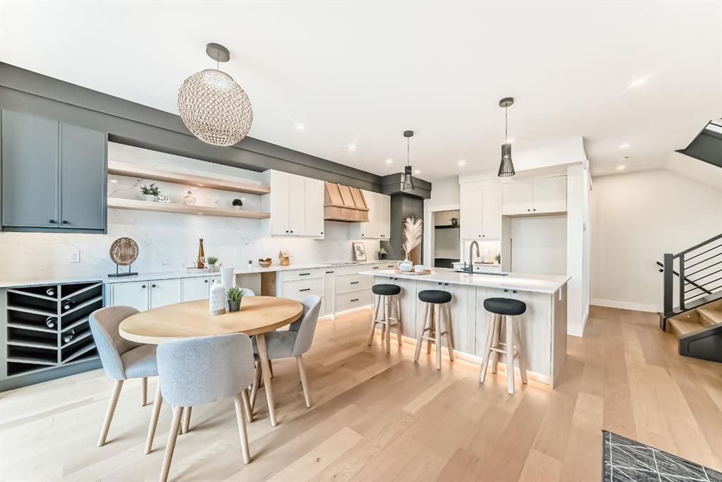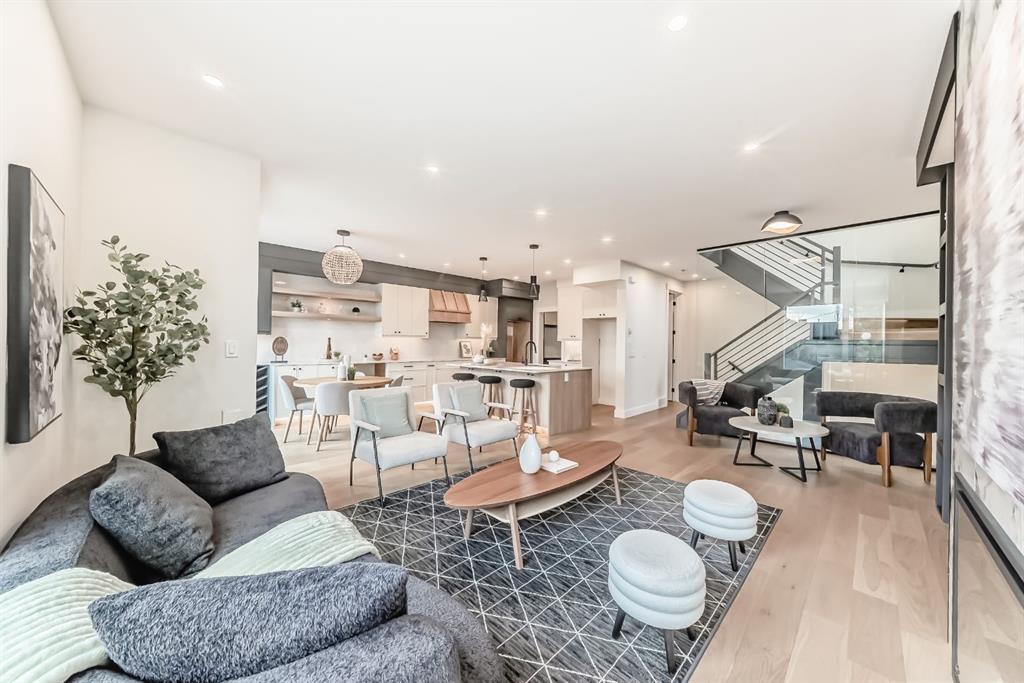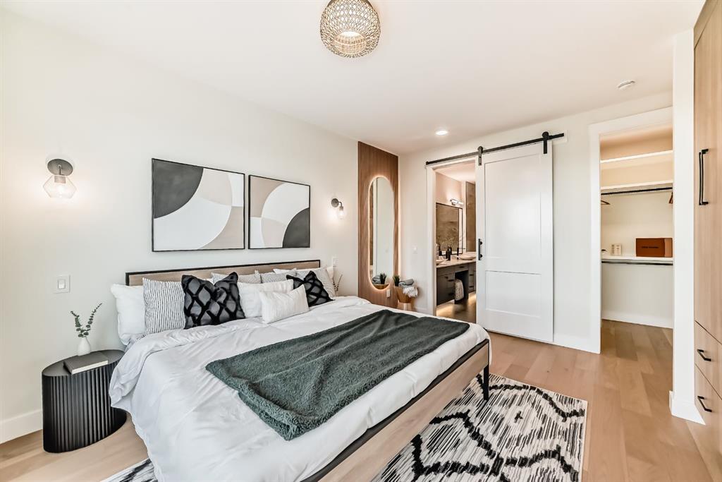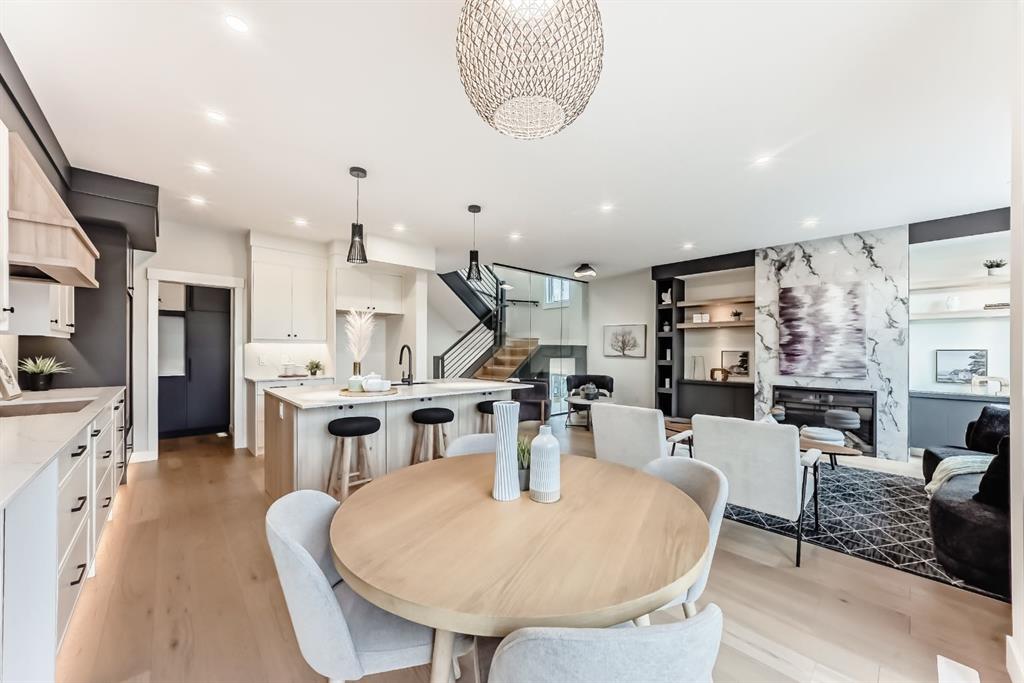 NOW SELLING – 3 STORY LUXURY TOWNHOMES | 4 UNITS AVAILABLE | UNDER CONSTRUCTION in ALTADORE Proudly built by Cascade Developments, these exceptional townhouses offer the perfect blend of style, function, and an unbeatable inner-city location on a quiet, tree-lined street. This corner townhouse spans over 2,300 sq. ft. of meticulously crafted living space and features three bedrooms above grade, a fully finished basement, a private balcony, and 4.5 bathrooms with premium contemporary finishes. The entry level welcomes you with an open-concept layout, engineered hardwood floors, custom wall panels, and an attached garage. The driveway showcases a stunning exposed aggregate finish, combining elegance with durability. This level also includes a bedroom or office with a large window, full ensuite, and closet, offering flexible living for guests or a home office. The staircase serves as a true centerpiece, featuring luxury glass panels, sleek modern handrails, and custom sensor LED lighting, adding a contemporary and sophisticated touch to the open-concept design. The main floor offers an expansive living area highlighted by a sleek electric fireplace. The chef-inspired kitchen features full-height custom cabinetry, quartz countertops and quartz backsplash, a gas range, built-in oven, a walk-in pantry, and a designer custom wood-slat hood fan. Buyers will also receive an appliance credit or may choose from available brand options. A convenient powder room completes this elevated living space. The top floor is designed for comfort, with two beautifully appointed bedrooms. Both the primary and secondary suites feature walk-in closets and spa-inspired ensuites with heated flooring, ensuring luxury and comfort. A dedicated laundry area with stackable washer/dryer adds convenience to this thoughtfully designed level. The fully finished basement offers exceptional versatility with a large rec room, perfect for entertaining, along with a wet bar and a 3pc bathroom. Buyers also have the option to upgrade to a four-bedroom basement layout at no extra cost, providing additional living space and flexibility. Throughout the townhouse, high-end contemporary finishes create a refined and luxurious atmosphere. Outside, low-maintenance landscaping ensures practicality without compromising curb appeal. Don’t miss your opportunity to own a luxury townhouse in Altadore, one of Calgary’s most desirable communities. Rough-in for central AC and garage heater are included. Book your private showing today.