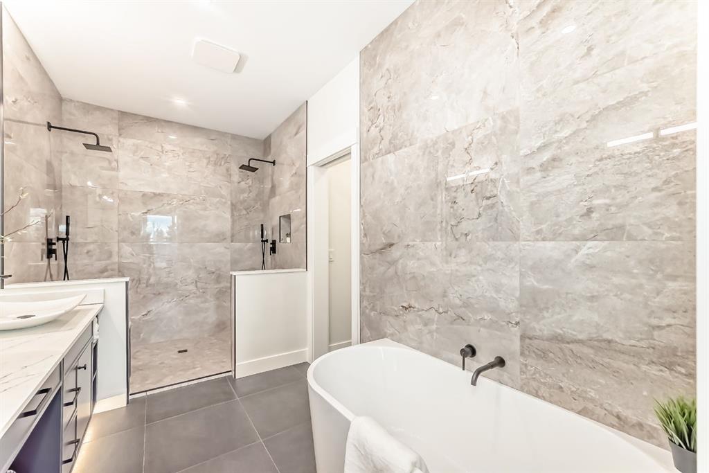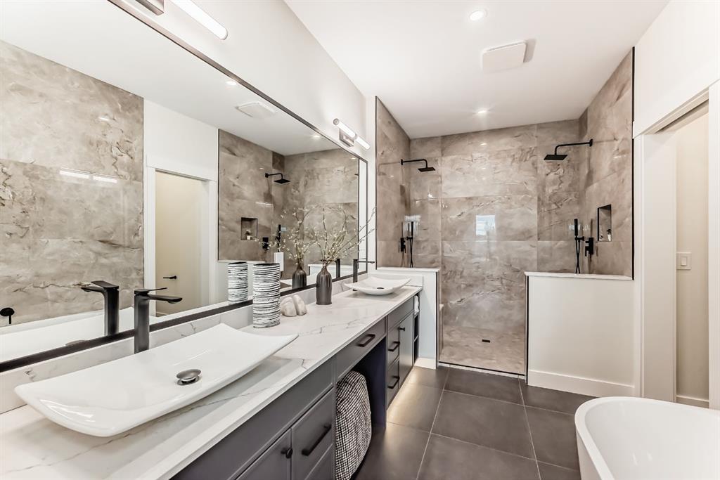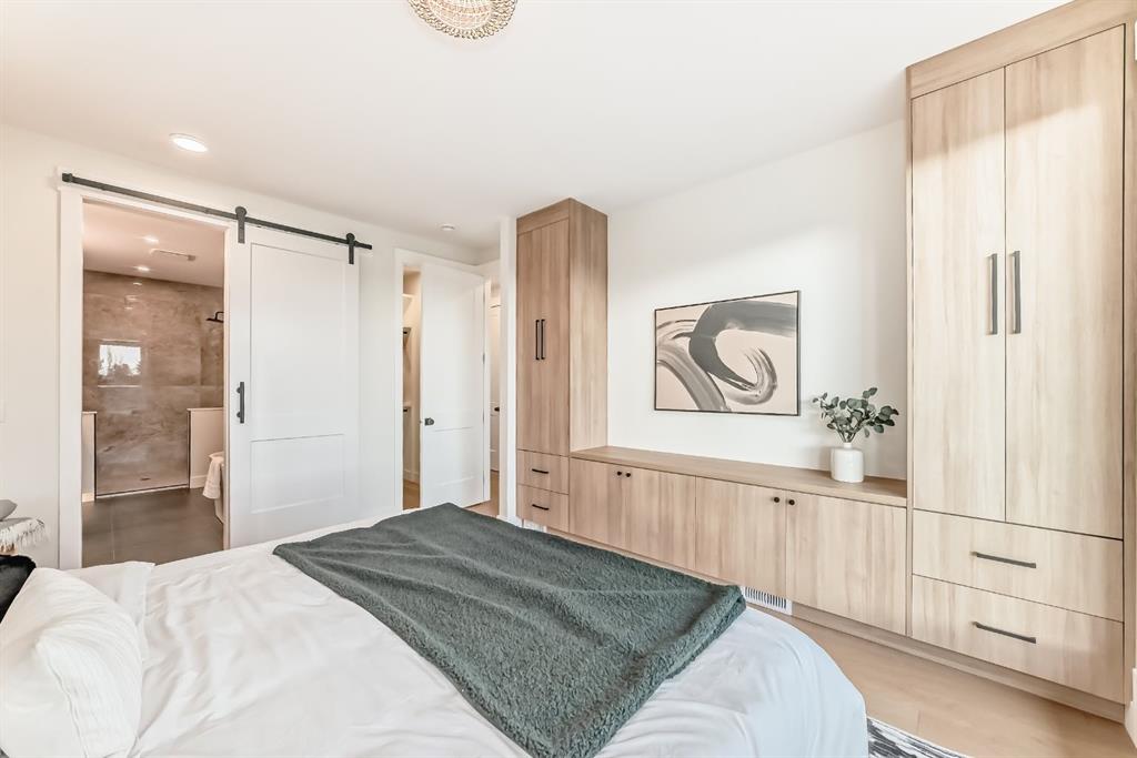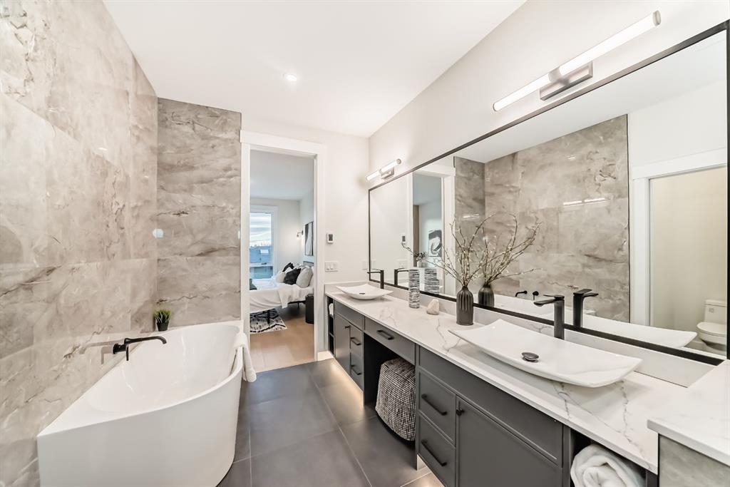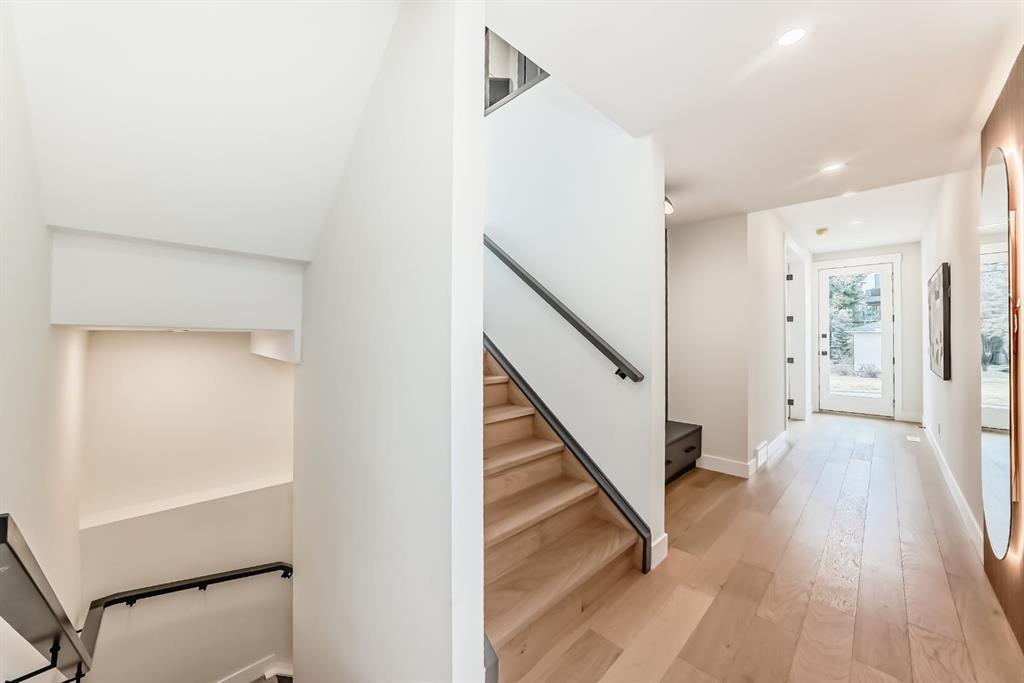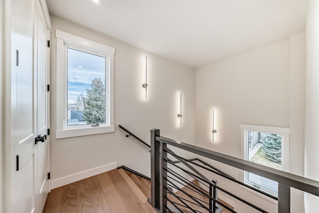 NOW SELLING – 3 STORY LUXURY TOWNHOMES | 4 UNITS AVAILABLE | UNDER CONSTRUCTION in ALTADORE Proudly built by Cascade Developments, these exceptional townhouses offer the perfect blend of style, function, and an unbeatable inner-city location on a quiet, tree-lined street. This corner townhouse spans over 2,300 sq. ft. of meticulously crafted living space and features three bedrooms above grade, a fully finished basement, a private balcony, and 4.5 bathrooms with premium contemporary finishes. The entry level welcomes you with an open-concept layout, engineered hardwood floors, custom wall panels, and an attached garage. The driveway showcases a stunning exposed aggregate finish, combining elegance with durability. This level also includes a bedroom or office with a large window, full ensuite, and closet, offering flexible living for guests or a home office. The staircase serves as a true centerpiece, featuring luxury glass panels, sleek modern handrails, and custom sensor LED lighting, adding a contemporary and sophisticated touch to the open-concept design. The main floor offers an expansive living area highlighted by a sleek electric fireplace. The chef-inspired kitchen features full-height custom cabinetry, quartz countertops and quartz backsplash, a gas range, built-in oven, a walk-in pantry, and a designer custom wood-slat hood fan. Buyers will also receive an appliance credit or may choose from available brand options. A convenient powder room completes this elevated living space. The top floor is designed for comfort, with two beautifully appointed bedrooms. Both the primary and secondary suites feature walk-in closets and spa-inspired ensuites with heated flooring, ensuring luxury and comfort. A dedicated laundry area with stackable washer/dryer adds convenience to this thoughtfully designed level. The fully finished basement offers exceptional versatility with a large rec room, perfect for entertaining, along with a wet bar and a 3pc bathroom. Buyers also have the option to upgrade to a four-bedroom basement layout at no extra cost, providing additional living space and flexibility. Throughout the townhouse, high-end contemporary finishes create a refined and luxurious atmosphere. Outside, low-maintenance landscaping ensures practicality without compromising curb appeal. Don’t miss your opportunity to own a luxury townhouse in Altadore, one of Calgary’s most desirable communities. Rough-in for central AC and garage heater are included. Book your private showing today.