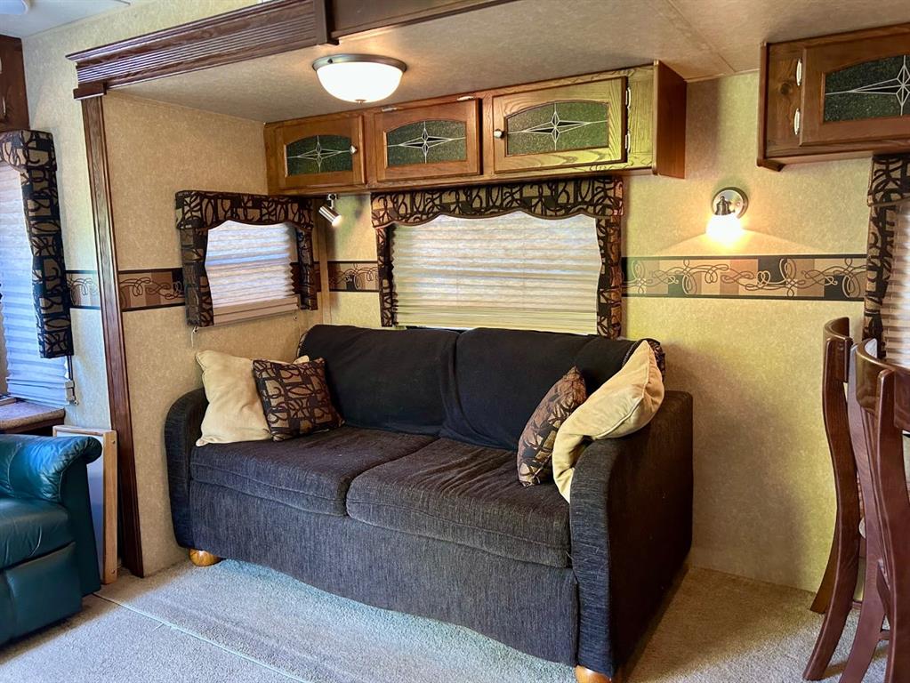 Tucked away in the quiet Riverside RV Village, this exceptional pie-shaped lot offers the perfect summer retreat for those seeking a peaceful escape without sacrificing comfort or convenience. Spanning approximately 6,000 square feet, the oversized lot is both spacious and private, thoughtfully developed to create a relaxing outdoor haven. Included with the property is a well-maintained 8’ x 30’ Forest River Inc. RV featuring one cozy bedroom—ideal for a couple or small family to unwind after a day of outdoor adventure. A sofabed adds additional sleeping space, if needed. A beautifully crafted 12’ x 20’ addition expands your living space and invites you to enjoy cooler evenings by the warmth of the propane fireplace, all while surrounded by nature. Whether you're sipping your morning coffee or relaxing on the private patio or gathering with friends around the private fire pit, this lot has everything you need to embrace the good life. The lot includes two handy sheds, with the larger one at the front offering ample room for use as a workshop, creative space, or guest overflow. Generous storage throughout the property ensures room for all your summer toys and gear. Enjoy full RV hookups and immediate access to the resort’s well-appointed clubhouse, complete with showers, washrooms, and laundry facilities—making extended stays effortless. The lot is just steps away from the Red Deer River, renowned for fishing and natural beauty, while nearby walking and biking paths let you explore the great outdoors at your own pace. The resort community also features family-friendly amenities including playgrounds, a sandpit, horseshoe pits, and even a basketball court. Golfers will appreciate the selection of scenic courses just minutes away, and with shopping close at hand, every convenience is within reach. Whether you're looking for a summer basecamp, a weekend getaway, or a quiet corner to relax and reconnect with nature, this Sundre River Resort property offers a rare blend of comfort, recreation, and tranquility. It's more than a lot—it’s your own piece of paradise.