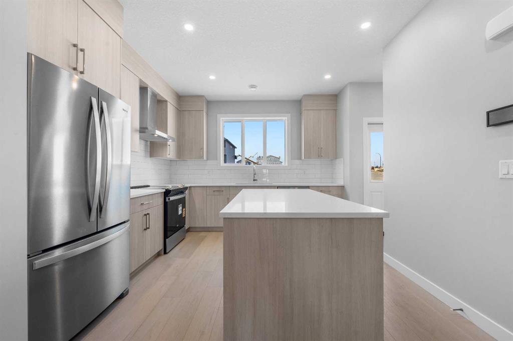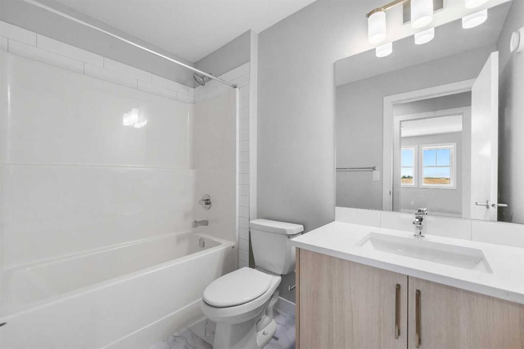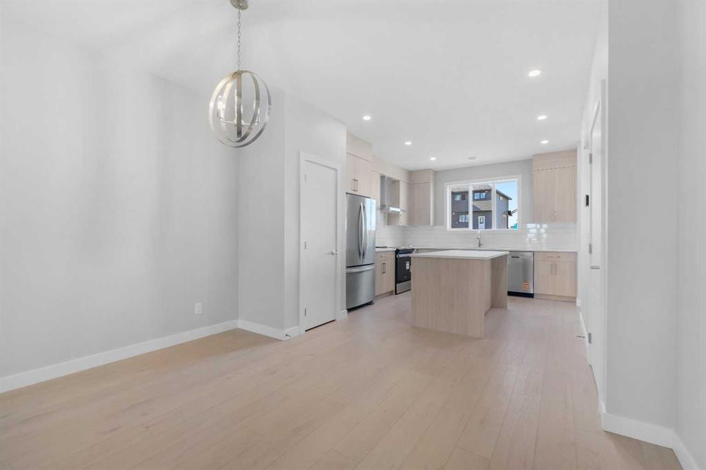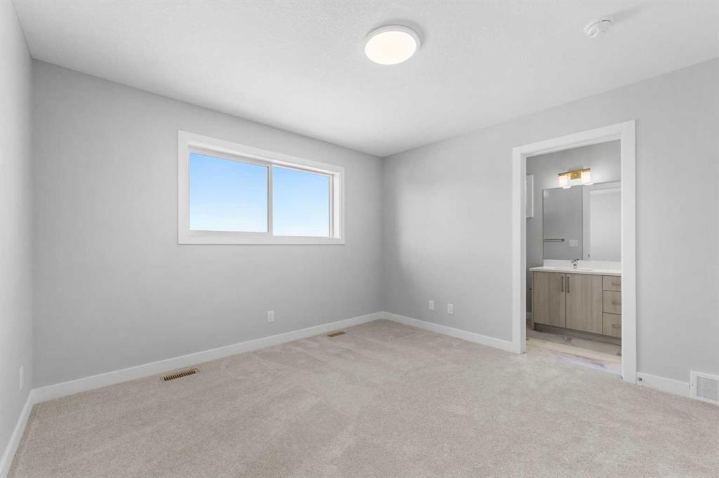 Welcome to the Edward by Partners Homes, located in the new North Calgary community of Keystone Creek. With three bedrooms and three full bathrooms, this newly built quick possession home combines modern style, everyday convenience, and long-term value, and it comes complete with the peace of mind of a new home warranty. The main floor begins with a versatile front flex room that works well as a home office, playroom, or hobby space. An open-concept layout connects the dining and living areas to a spacious kitchen with a large island, gas line for cooking, upgraded hood fan and microwave, and plenty of storage. A rear mudroom provides easy access to the backyard, complete with a BBQ gas line for outdoor living. The main floor also includes a full bathroom with a fully tiled shower, adding convenience and flexibility for guests or multi-generational living. Upstairs, the primary suite features a walk-in closet and an ensuite bathroom with dual vanity sinks, while two additional bedrooms, a full bathroom, a central bonus room, and upper-level laundry complete this level. This home also includes legal suite rough-ins for future flexibility, upgraded quality carpets, front yard landscaping with trees and shrubs, and a full appliance package with fridge, stove, hood fan, microwave, dishwasher, washer, and dryer. A side entrance and a two-car gravel parking pad add even more potential and value. Keystone Creek is a master-planned community in North Calgary where access to everything the city has to offer is at your doorstep. Residents enjoy quieter roads, family-friendly streets, and thoughtfully planned green spaces. The community features pathways connected to the regional trail system, naturalized wetlands, and parks to explore. Everyday amenities are just minutes away, including grocery stores, restaurants, gas stations, childcare, dental and healthcare services, and more. Quick access to CrossIron Mills Mall, downtown Calgary, and the Calgary International Airport makes Keystone Creek a highly connected community while offering a peaceful place to call home. Book your private showing today and see why Keystone Creek is one of Calgary’s most exciting new communities!