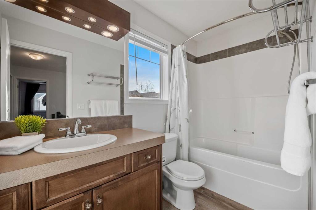 Step into exceptional Bayside living in this truly one-of-a-kind home located across from the scenic canal where every detail has been thoughtfully planned for comfort, style and everyday enjoyment. From the moment you arrive, you’ll appreciate the inviting curb appeal, oversized heated double garage, perfect for year round convenience, extra storage, or a functional workshop space. Thoughtful upgrades include a tankless water heater, air conditioning, water softener, and newer washer & dryer, delivering modern efficiency and comfort. Inside, enjoy luxury vinyl plank flooring throughout (except the kitchen), no carpet anywhere! The open, light-filled main floor showcases a spacious living area with bay windows, half bathroom, a great kitchen with large pantry, custom dining nook with benches and beautiful custom built-ins throughout, creating both style and smart storage solutions. Upstairs features 3 spacious bedrooms, including a relaxing primary retreat complete with a 4-piece ensuite, walk-in closet with built-ins and a custom kangaroo bed, ET centre, dresser, side storage towers, armoire and make up vanity included. An additional 4-piece main bath serves the 2 secondary bedrooms, ideal for families or guests. The developed basement offers incredible versatility with sound-dampening insulation, making it perfect for movie nights, a games area, or a quiet workspace, and don’t miss the secret door feature that adds a fun and unique touch! Step outside to your massive cedar deck with pergola, an entertainer’s dream. With a natural gas BBQ hook-up, plenty of space to host, and an extra wide lot with garden beds for the green thumb in the family, this backyard was designed for unforgettable summer evenings. An additional concrete pathway along the south side of the home enhances functionality and access to your outdoor space. This is more than just a home; it’s a lifestyle opportunity in one of Airdrie’s most sought-after canal communities. With premium upgrades, unbeatable outdoor living, and an incredible location, buyers will not want to miss this one. Walkable to Nose Creek Elementary school (K-5), shopping, parks and so much more, this location has it all. Book your private viewing today, homes like this don’t last. VIRTUAL TOUR AVAILABLE!