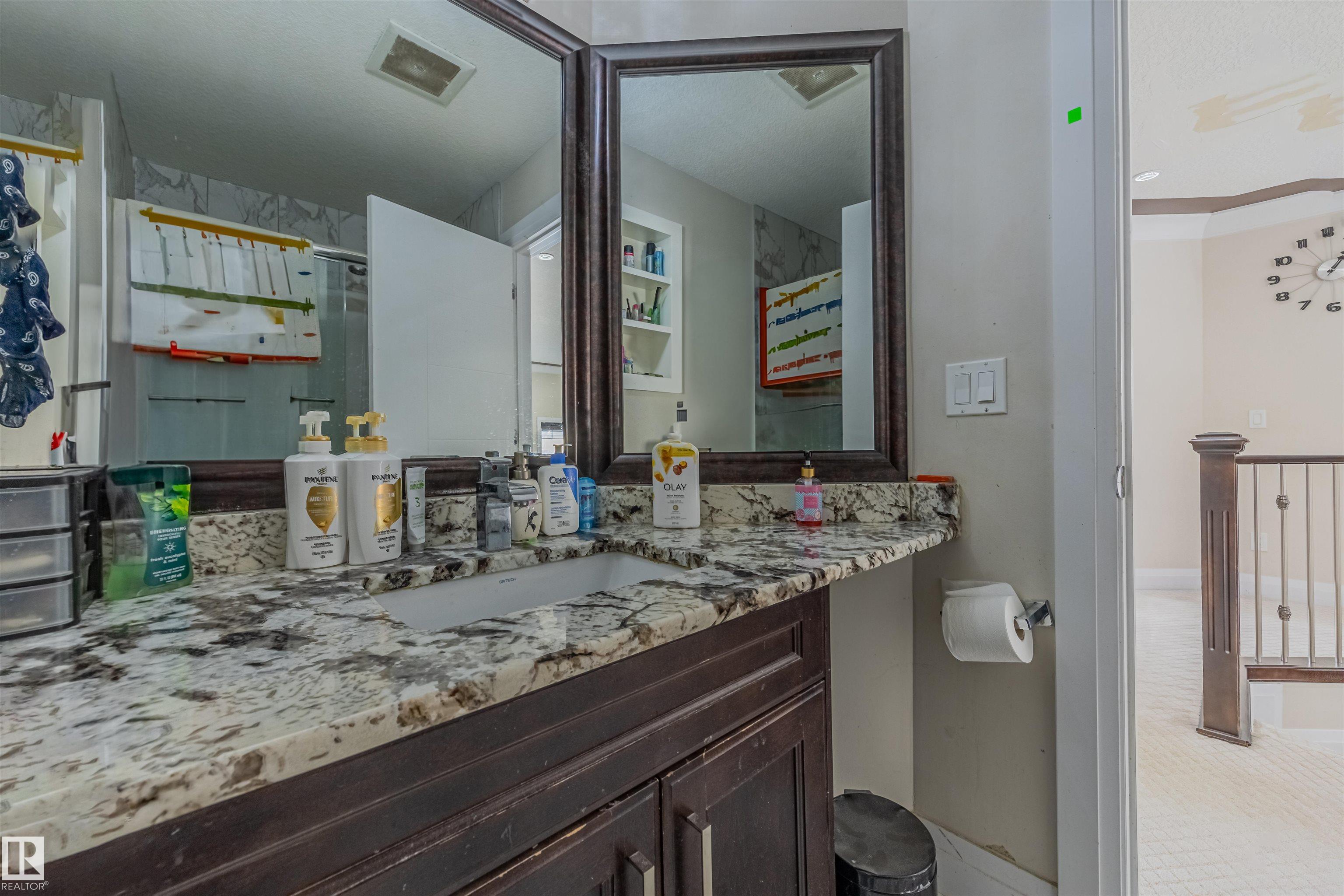 Custom-built Mcconachie treasure 5 bed, 4 full bath, 2546 sqft home designed for functionality! Step into a grand foyer w/ soaring double-height windows & an open-to-below design. Throughout, find beautiful millwork, including coffered ceilings, custom wall detailing, built-in cabinetry & panelled accents. The main floor boasts a dining room, two living areas—one w/ a NG fireplace—flowing into a chef’s kitchen w/ espresso cabinetry, glass inserts, granite countertops & large island. Patio doors open to a spacious deck & fenced yard. A main-floor bedroom w/ custom wall detailing & full 4-piece bath is perfect for guests or multi-generational living. Upstairs is a dream for large families, featuring versatile loft/bonus area & 4 spacious bedrooms all w/ walk-in closets. Primary suite impresses w/ dual walk-in closets & 5-piece ensuite w/ a soaker tub, dual sinks & a walk-in shower. Second bedroom w/ its own 4-piece ensuite offers added privacy & convenience. All this + separate basement side entrance!