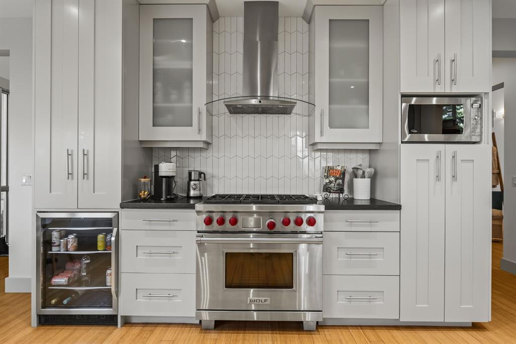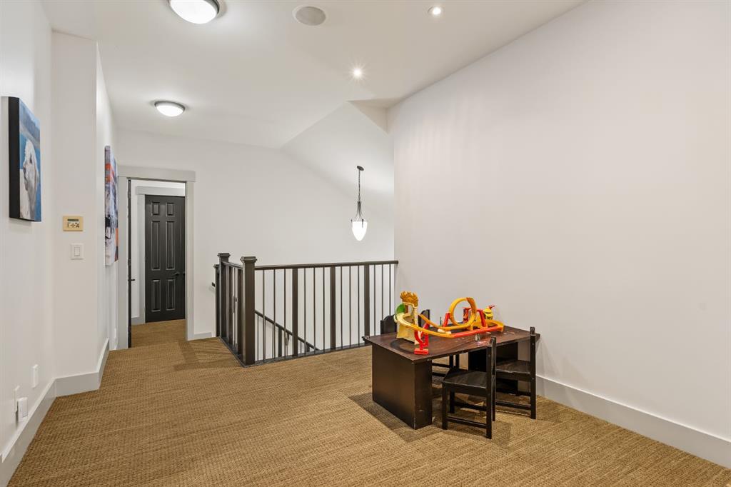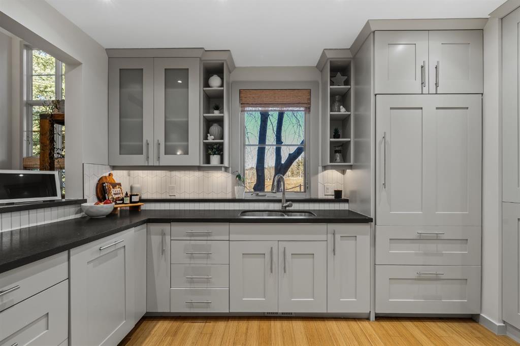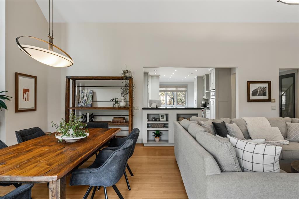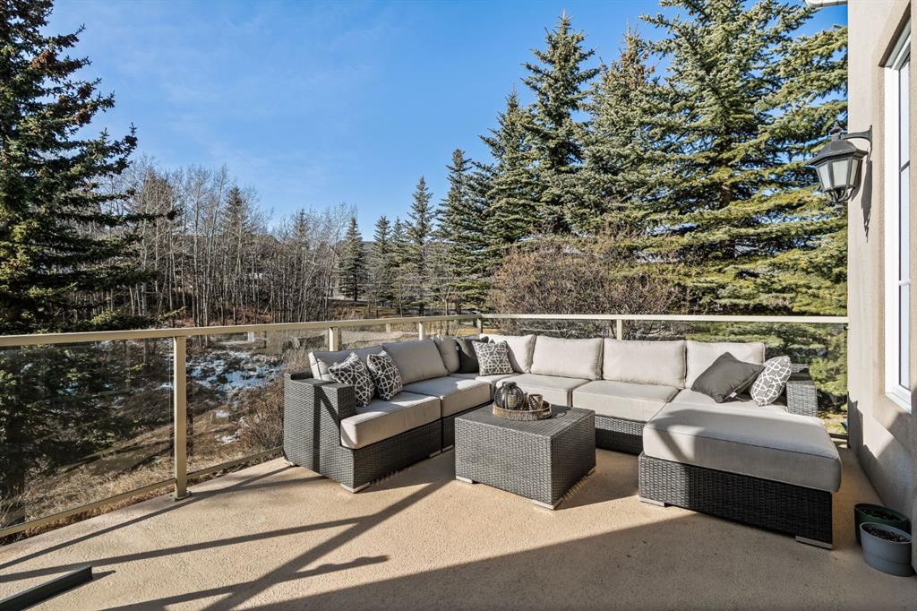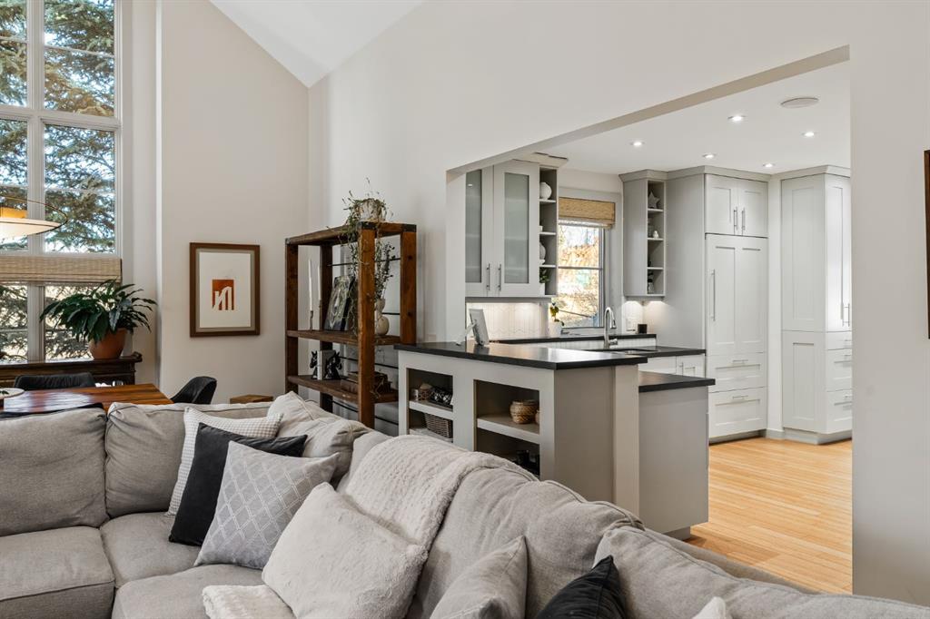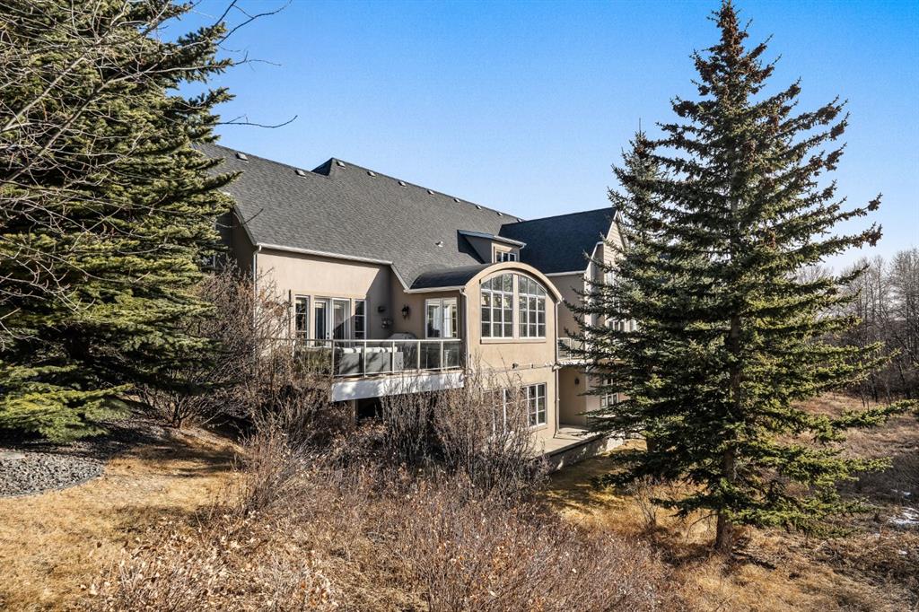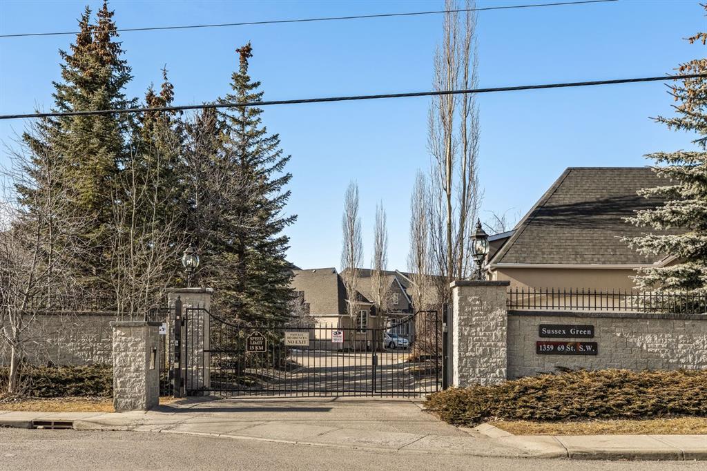 Welcome to this exceptional villa in the exclusive gated enclave of Sussex Green. This desirable end unit offers nearly 5,000 sq ft of beautifully developed living space and a rare walkout lower level, all set against a stunning ravine backdrop surrounded by mature trees, nature and winding pathways. Extensively updated including a brand new furnace, this home showcases a timeless, bright and airy design with vaulted ceilings and a one-of-a-kind layout not found elsewhere in the complex. A distinct West Coast feel is evident throughout, with expansive windows that invite the outdoors in and flood the home with natural light. The main level features hardwood flooring throughout, a spacious open-concept living and dining area anchored by a striking gas fireplace, and seamless flow into a chef’s kitchen complete with top-of-the-line appliances and a sunlit breakfast nook. An office just off the living room provides the perfect work-from-home retreat. The primary bedroom is conveniently located on the main floor, creating an ideal downsizing or executive layout. Two balconies offer multiple outdoor spaces to relax and take in the serene surroundings. Upstairs, you’ll find two large bedrooms with a shared bathroom along with a versatile flex space ideal for a lounge, studio or additional workspace. The walkout lower level features polished concrete flooring with in-floor heating, a spacious media and games room, an additional bedroom and full bathroom — perfect for guests or extended family. Completed by a double attached heated garage and ideally located close to schools, shopping and amenities, this is a rare opportunity to own in one of the area’s most coveted gated communities. (Exterior image of front of home has been virtually staged to reflect one of Calgary’s many seasons)