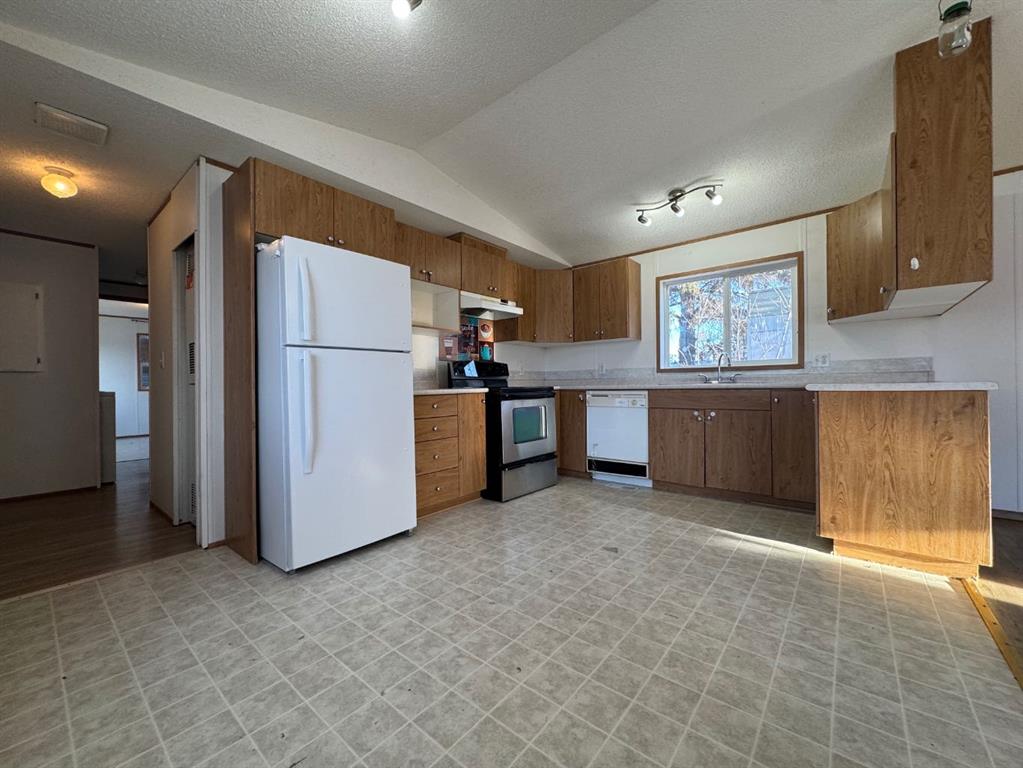 If you're on the hunt for a home that combines affordability with comfort, your search ends here! This property offers an ideal mix of cost efficiency and convenience, featuring three spacious bedrooms and a 4 piece bathroom. Embrace the joy of cooking with a well appointed kitchen boasting ample cabinetry and counter space. The kitchen & dining area not only meets your practical needs but also provides a warm & inviting atmosphere for family and friends to savor home cooked meals. The living room is a place where people naturally congregate, whether it's family movie nights, game sessions, or casual conversations, this living room is fantastic place to unwind. There is enough space for family, guests, or even a home office. Excellent for families, first time homebuyers, or anyone looking to downsize without compromising on comfort. With all the living spaces on a single floor, there's no need to navigate stairs, making household chores more manageable, especially tackling your laundry. Just imagine the warmth of the sun while relaxing outdoors enjoying not one, but two inviting decks and a maintenance-free yard. Your next chapter begins here!