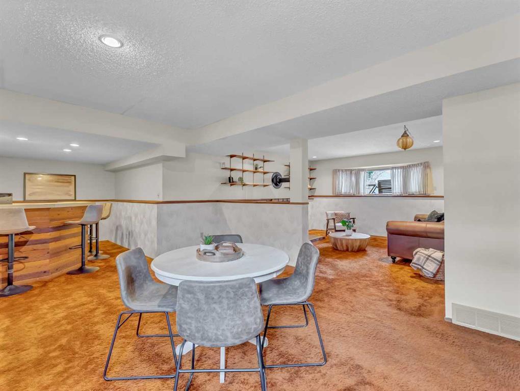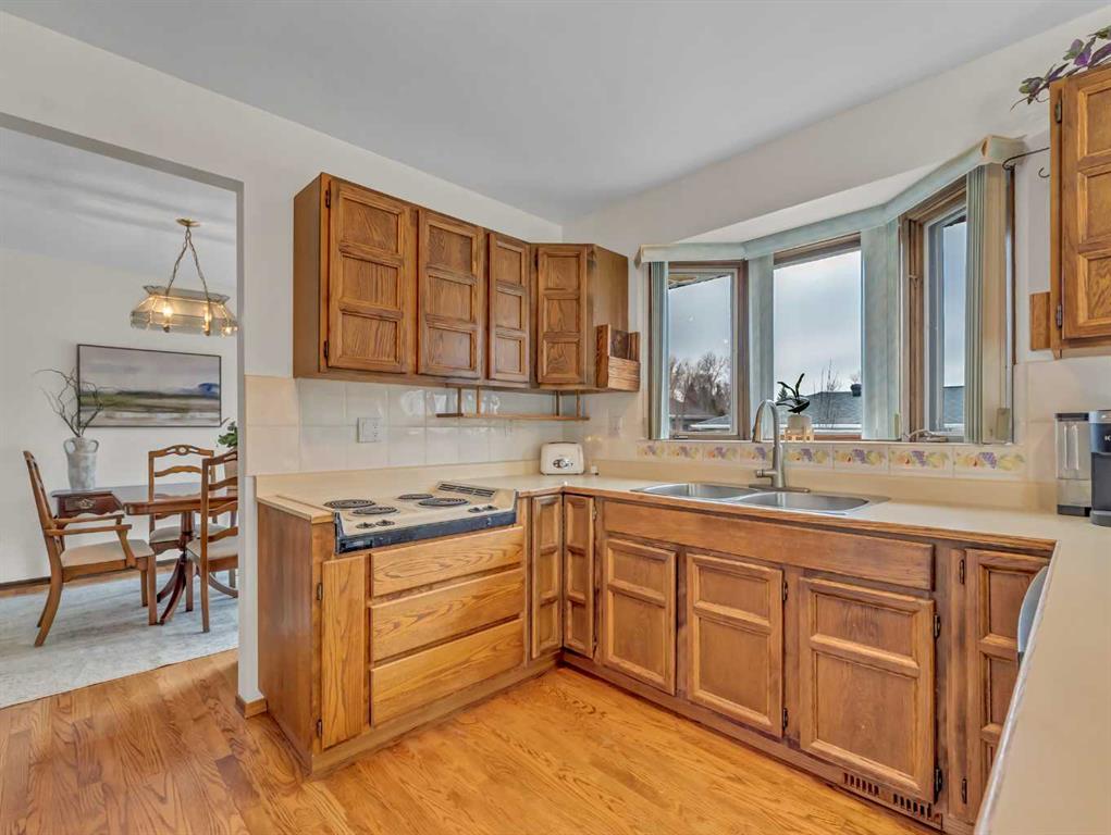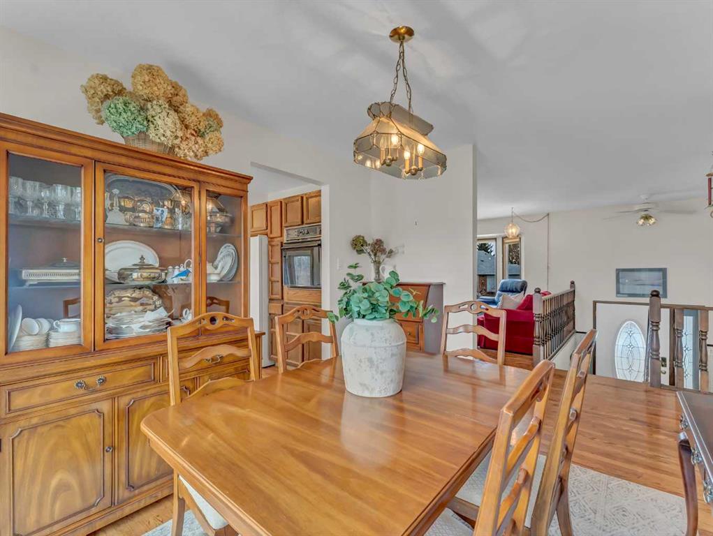 Welcome to 17 Iris Court SE, nestled in the desirable neighborhood of Connaught. This well-maintained bi-level home offers a unique blend of character, comfort, and functional living space, perfect for families or those who love to entertain. The bright upper level features a retro, well-loved kitchen that adds charm and personality while telling the story of the many meals cooked with love for family and friends while they gathered in either of the two dining areas perfect for both casual meals and formal gatherings. The in kitchen eating area is nestled just below the kitchen for a unique feel with the added charming feature of a vaulted, wood ceiling, bay windows and garden doors out to your outdoor space. A large family room offers plenty of space to relax, and a dedicated office with beautiful hardwood floors is ideal for working from home or could be used as a third main floor bedroom. Finishing off the upper level is a spacious primary bedroom complete with a convenient 3-piece ensuite, along with a second generously sized bedroom and an additional 4-piece bathroom. Throughout the home, pride of ownership is evident with its clean, well-cared-for condition. The lower level offers a warm, moody, and cozy atmosphere. Here you’ll find a comfortable family room anchored by a gas fireplace, a wet bar for entertaining, a charming nook that makes for a wonderful flex space, and a great recreational space tucked away in a private setting. A fourth bedroom and a convenient laundry and bathroom combination add practicality. Step outside to enjoy the inviting outdoor living spaces, including a deck, patio, garden, and a lovely pergola—perfect for summer evenings, gardening, or hosting friends and family. Off the front of the home you have a private patio space to sit and enjoy morning and evening, and outdoor access to your double attached, heated garage. With its thoughtful layout, welcoming character, and wonderful indoor and outdoor spaces, this Connaught home that has so much love embedded within its walls is ready for its next chapter. Picture your children or grandchildren living in this golf course community, maybe taking the cart for a ride in the court, catching a couple holes of golf together as the sun goes down, safely riding their bikes or scooters on the sidewalks to play in the parks, or throwing a baseball in the greenspaces - It doesn't get much better.