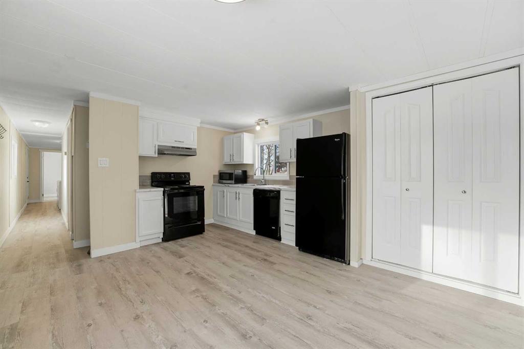 Welcome to this updated and well-kept 2 bedroom, 1.5 bathroom mobile home on a larger lot in Lacombe. Recent exterior upgrades include NEW siding, windows, doors, kitchen, flooring, & deck. Inside you’ll find a bright layout with a wood panel feature wall in the living room. The lot rent includes water, sewer and the pad rent itself along with snow removal and lawn care of the common areas. Move-in ready and located in a quiet area of Lacombe!