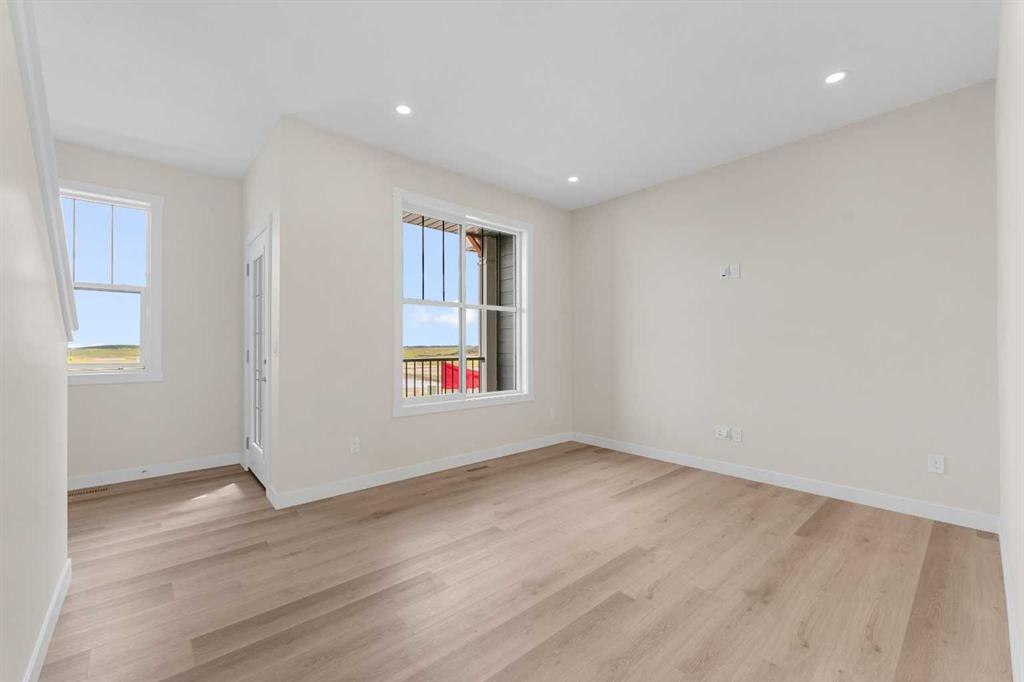 ** Brand New No Condo Fee Townhome Built by Genesis Homes ** Theo Model | Ready for Summer 2026 | 3 Beds | 2.5 Baths | Double Attached Garage | Main Level Den/Office | Incredible Open Floor Plan | Top of the Line Finishes | Quartz Countertops | Designer Curated Backsplash | Full Height Cabinets | Builder Package Stainless Steel Appliances | Gas Line to Range | Walk-in Pantry | Wide Plank LVP Flooring | Sizeable Bedrooms | Upper Level Hall Laundry | Smart Automated Home | Balcony | BBQ Gas Line | Double Attached Garage | James Hardie Siding. This stunning Theo model by Genesis boasts 1,687 SqFt, 3 bedrooms, 2.5 bathrooms and a spacious open floor plan layout that’s perfect for families, professionals, or anyone who loves extra space. The front door opens to a main level foyer with closet space and a flex den. With large windows and high ceilings this space is space has the versatility to be an office space with a peaceful retreat for work or creativity. Head upstairs to the 2nd level to a grand floor plan both open and functional. The kitchen is outfitted with sparkling quartz countertops, ample cabinet storage, a gas line and a stainless steel builders appliance package. The centre island in the kitchen is equipped with a barstool seating area making it the perfect space to enjoy small meals and socialize while you cook. The walk-in pantry is a bonus to your dry good storage. The dining room paired with the kitchen makes for an easy stove to table transition. The spacious living room is the perfect area to unwind with your family in the evenings and is ideal for hosting guests. Just off the living room is a door to your private balcony with a gas BBQ line for those summer cook outs! The uppermost level is paired with 3 bedrooms, 2 full bathrooms and hall laundry. The primary bedroom is a personal retreat with a deep walk-in closet and private 4pc ensuite bath with a deep tub/shower combo. Bedrooms 2 & 3 share the main 4pc bath with a single vanity and tub/shower combo. The upper level laundry is a treat as its located near all the bedrooms. The double attached garage secures you 2 year round secured parking and space for seasonal storage. Located just moments from essential amenities and nestled close to a picturesque park, you’ll enjoy easy access to shops, dining, and outdoor activities. Take in breathtaking mountain views and sunsets as you stroll by the serene pond. Hurry and book your showing at this gorgeous Genesis home today! Genesis Builders Group follows the First-Time Home Buyer GST/HST Rebate to eliminate the 5% GST on qualifying new homes (up to $1 million) for qualifying first time home buyers.*Photos & iguide are of 153 Wild Rose Way, THEO Model. Colors and finishes may differ at the time of completion, discuss with Builder Directly for final pallets.