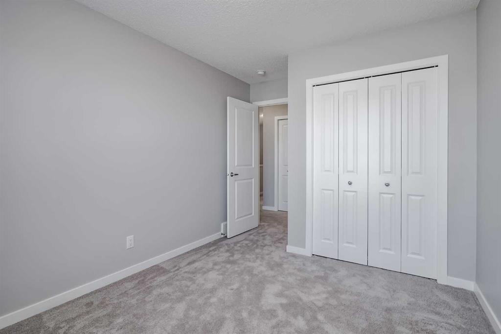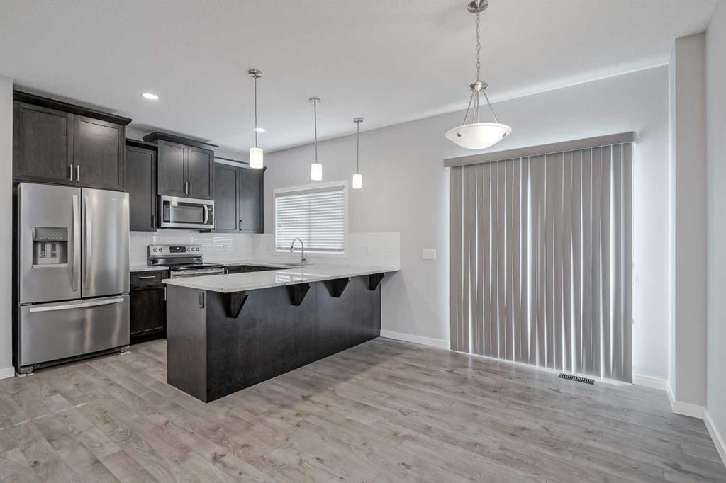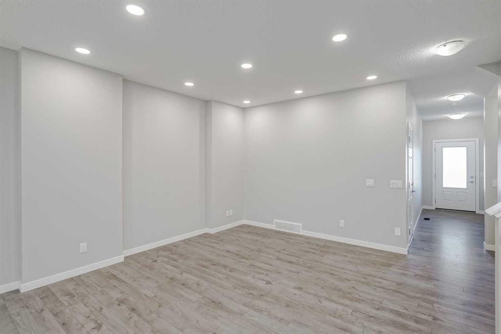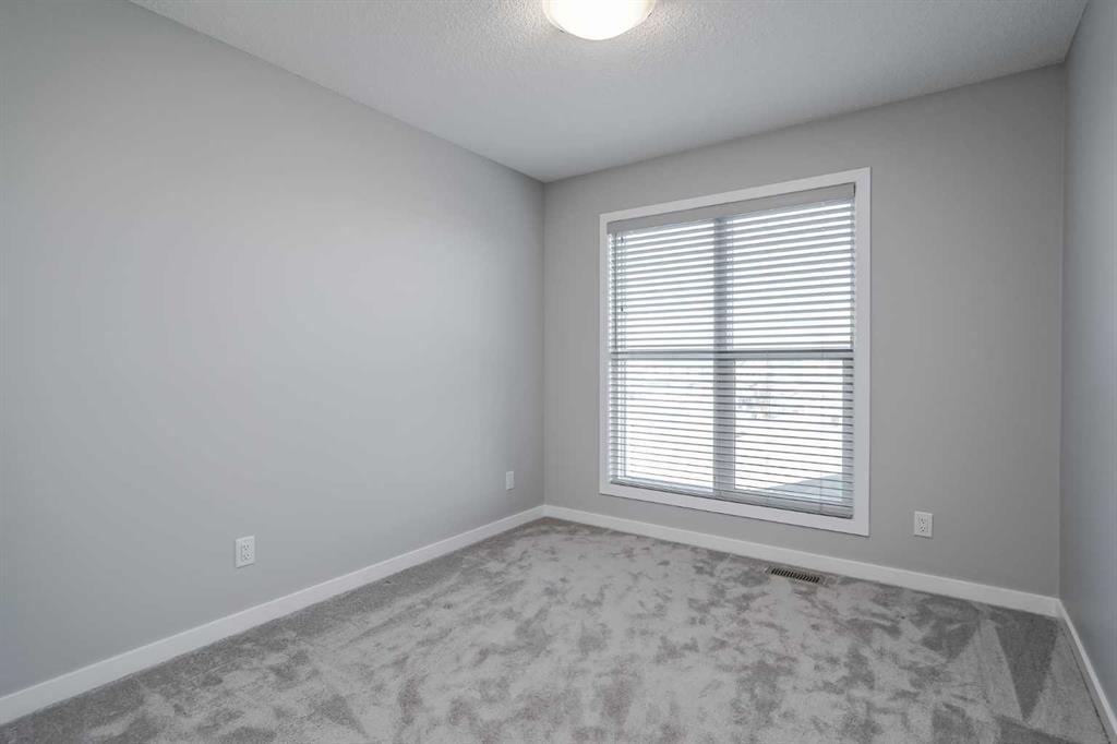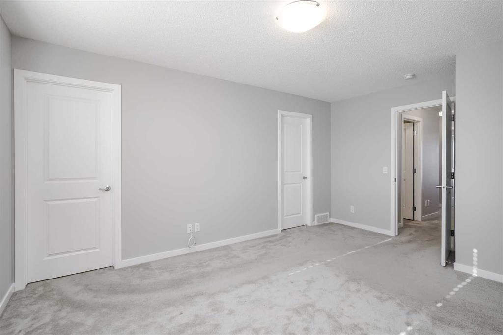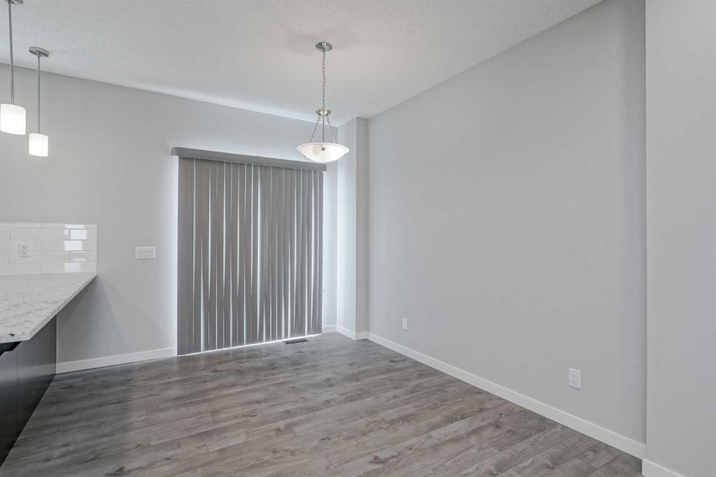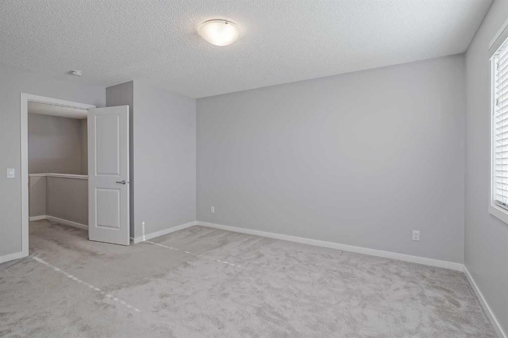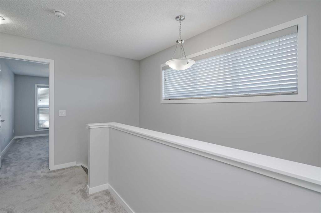 An Unbeatable Opportunity with Unmatched Privacy Don't miss this rare chance to own a beautiful half-duplex in the desirable community of Carrington—a home that offers both an incredible value and a peaceful setting. This property stands out from the rest with its unique pie-shaped lot and the huge bonus of no rear neighbors, ensuring a private, serene backyard oasis. Step inside and be greeted by the home's bright, open-concept floor plan, enhanced by soaring 9-foot ceilings and elegant Luxury Vinyl Plank flooring on the main level. The living room is flooded with natural light, creating a warm and welcoming atmosphere. The thoughtfully designed kitchen is a chef's delight, boasting a full set of stainless steel appliances, beautiful quartz countertops, an eating bar, and soft-closing drawers. It's perfectly positioned to serve the spacious dining area, making it ideal for everyday meals and entertaining. Upstairs, the generous primary bedroom is your private retreat, featuring a walk-in closet and a private 3-piece ensuite. Two additional well-sized bedrooms offer large windows and share a 4-piece bathroom, providing comfort and space for family or guests. Plus, the convenience of an upper-level laundry room makes chores a breeze. The full and unfinished basement is a blank canvas, giving you the freedom to create a space that perfectly suits your needs, with rough-in plumbing already in place for a future bathroom. Enjoy year-round comfort with central air conditioning and the added convenience of an insulated attached garage. The true highlight of this home is the expansive, fully fenced southeast-facing backyard, complete with a deck and patio and underground sprinklers. It’s a spectacular space for entertaining, gardening, or simply relaxing in complete privacy. Located in a fantastic community with easy access to shopping, parks, and major routes like Stoney Trail, this home offers everything you need and more.This is not just a house; it's the perfect combination of modern living, privacy, and endless potential. Priced to sell, this exceptional home is a smart investment showing today!