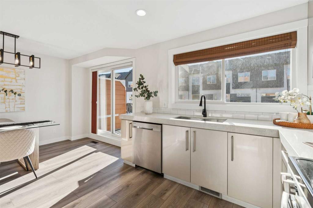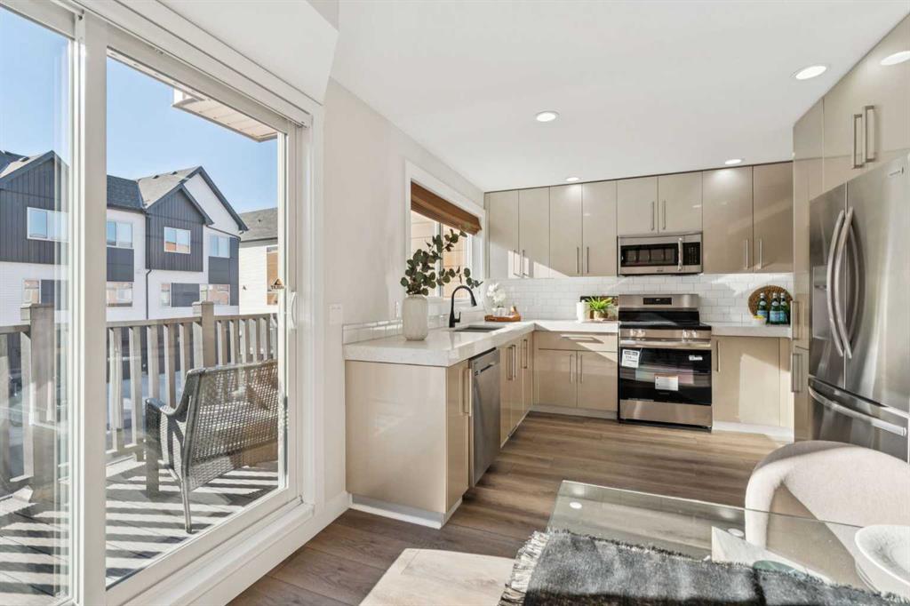 CHECK OUT OUR 24/7 VIRTUAL OPEN HOUSE. Modern Style Meets Everyday Comfort in Bayside! This 3-bedroom, 2.5-bath beauty feels brand new from top to bottom! Step inside and instantly fall in love with the airy, open vibe, freshly painted walls, doors, and ceilings, and gorgeous new luxury vinyl plank flooring that ties everything together. The living room is a total showstopper — a dramatic high-ceiling gas fireplace feature sets the tone for cozy nights in and stylish entertaining. The modern kitchen is equally impressive with sleek cabinetry, brand-new stainless-steel fridge and stove, and a west-facing balcony right off the dining area—perfect for BBQs (yes, there’s a gas hookup!) or catching those golden sunset views. Upstairs, the primary suite is pure relaxation with zebra blinds, tons of light, and a 5-piece ensuite that feels like your own private spa. Even the garage deserves a shoutout — a double attached setup with an epoxied floor so spotless, you could eat off it. The hot water tank and furnace have both been fully serviced, so you can move in with peace of mind. And location? It’s a dream. You’re right across from a park and peaceful canal with walking paths, ideal for morning coffee strolls or evening dog walks. Residents also have access to the sport court through Jade Holmes, for pickleball, basketball, etc. There’s lots of visitor parking right out front, and you’re just minutes from great shopping, restaurants, and everything you need. If you’ve been looking for a home that blends modern design, low-maintenance living, and unbeatable convenience — welcome home.